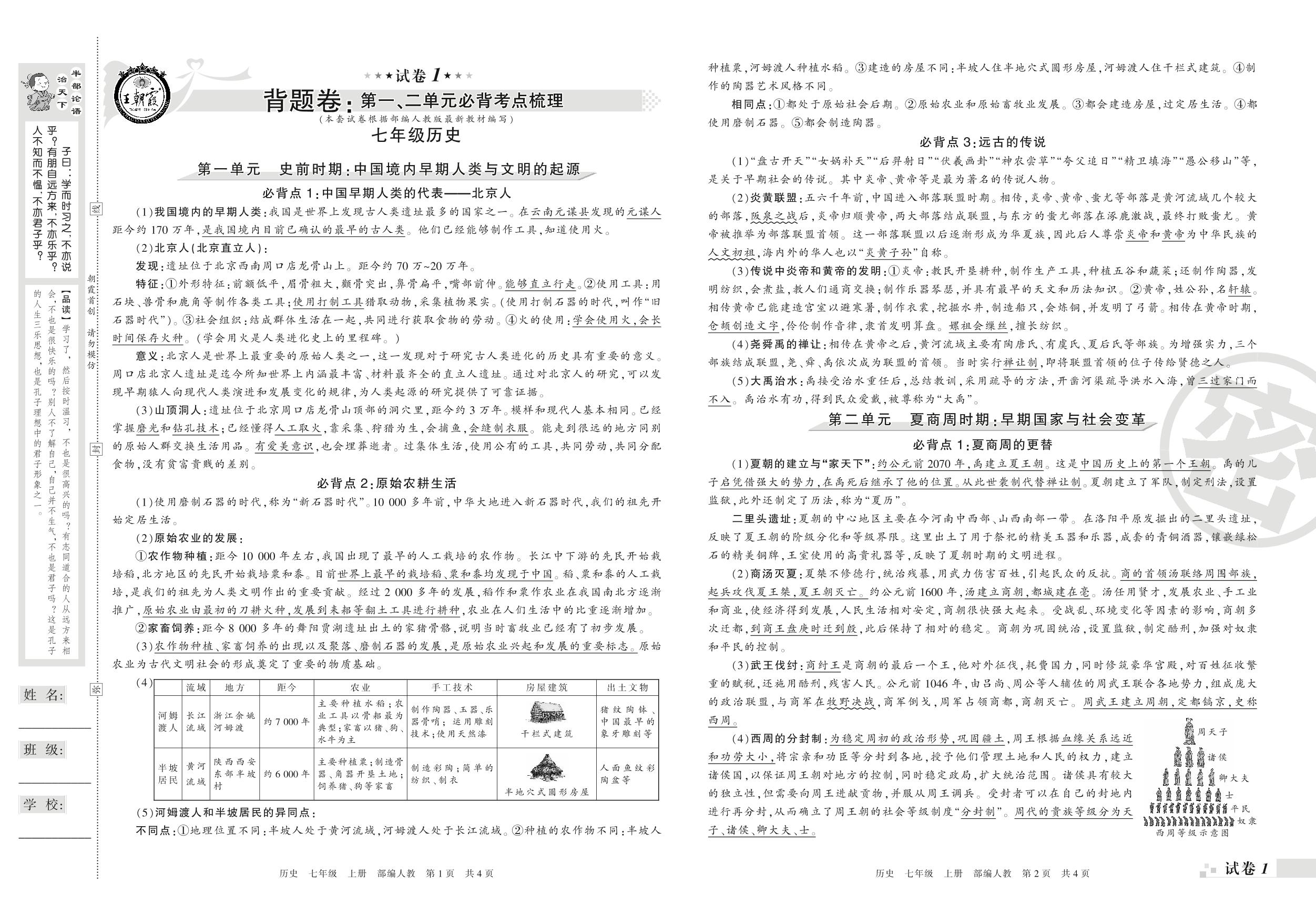 王朝霞期末背题卷——第一、二单元必背考点梳理七年级上册历史(人教版)_R210810105016【1】