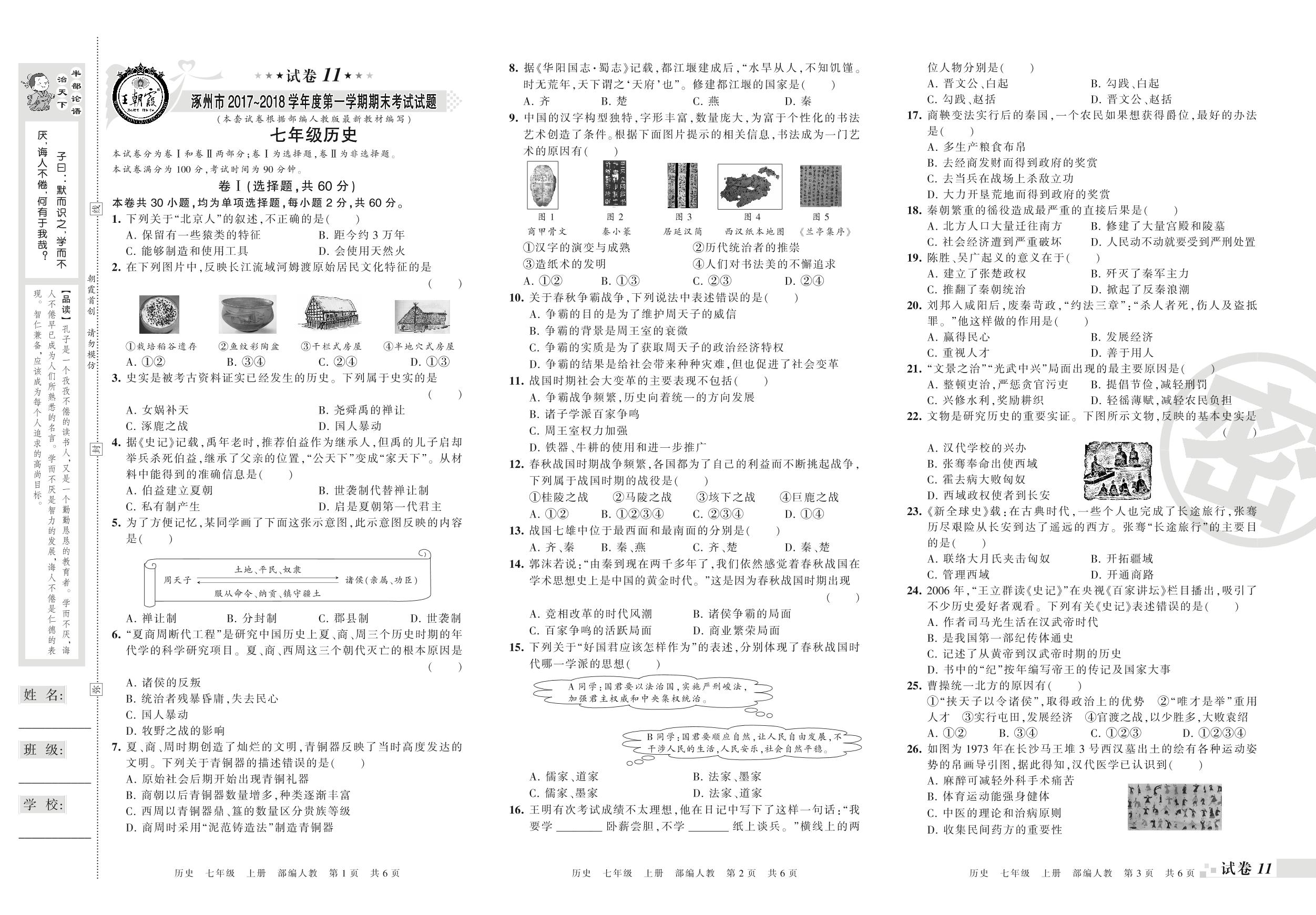 2017-2018学年度第一学期涿州市七年级历史试卷(人教版)【11】