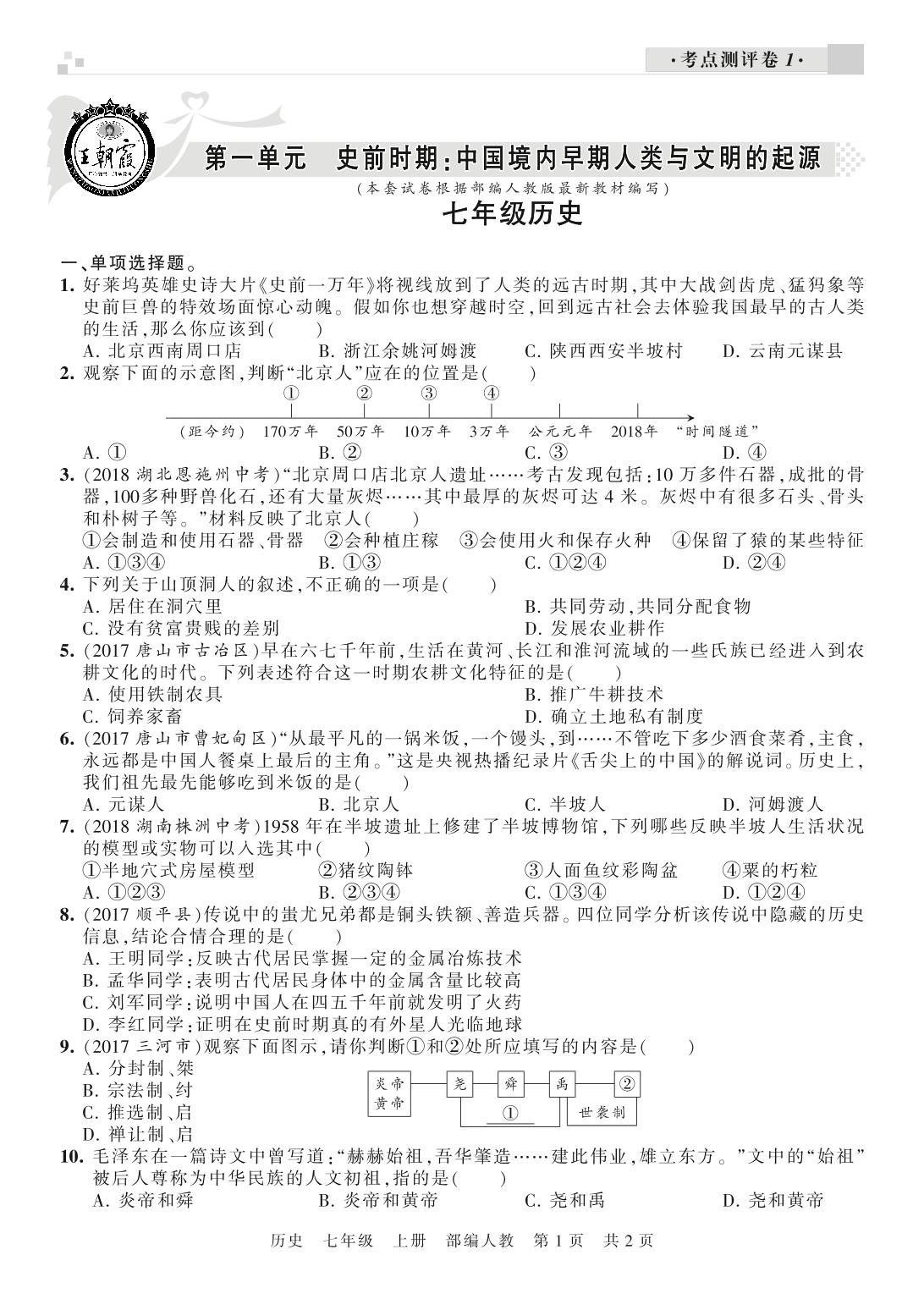 王朝霞期末小卷——考点测评卷七年级上册历史(人教版)_R210810105143【0】