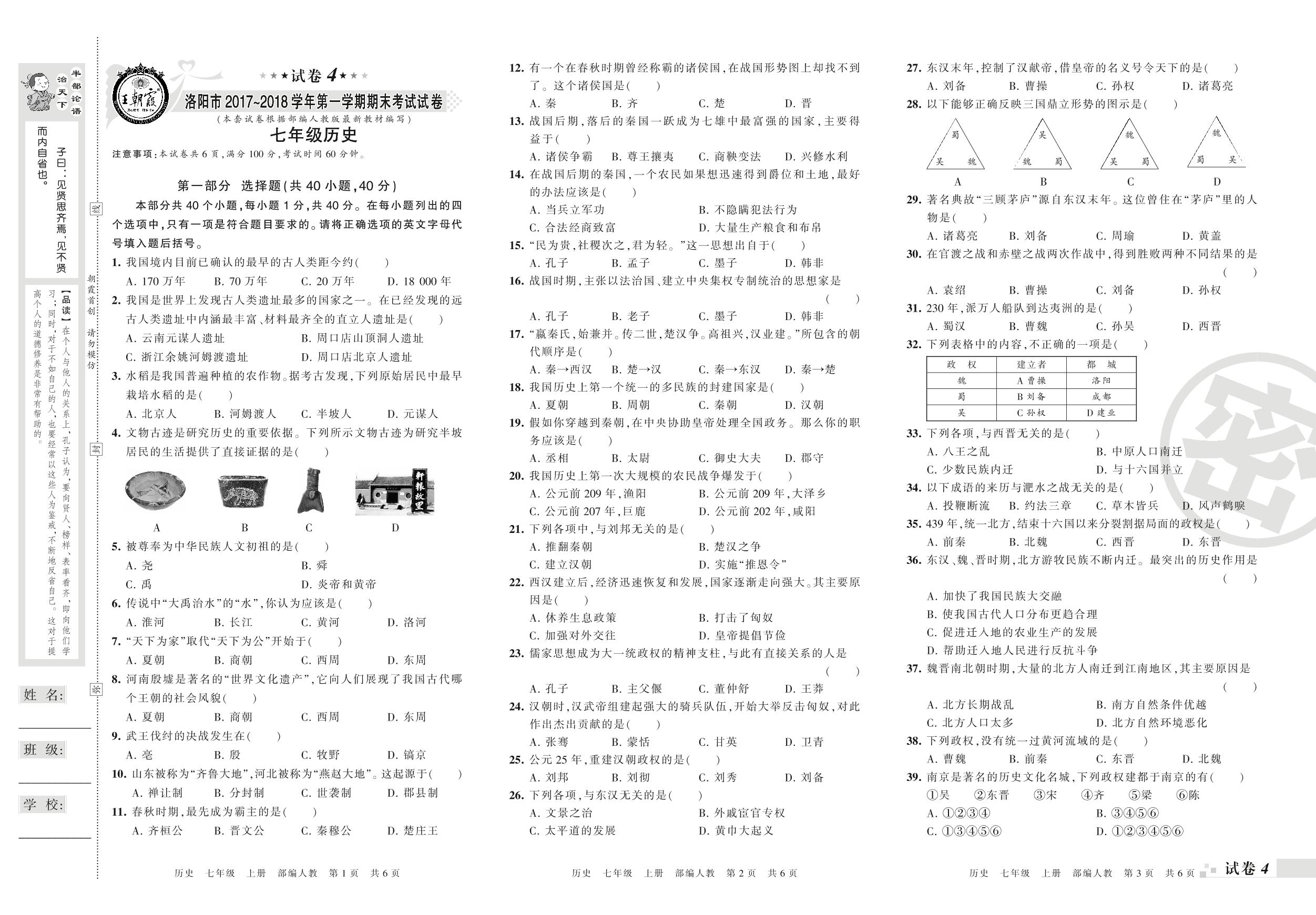 2017-2018学年第一学期洛阳市七年级历史试卷(人教版)【4】