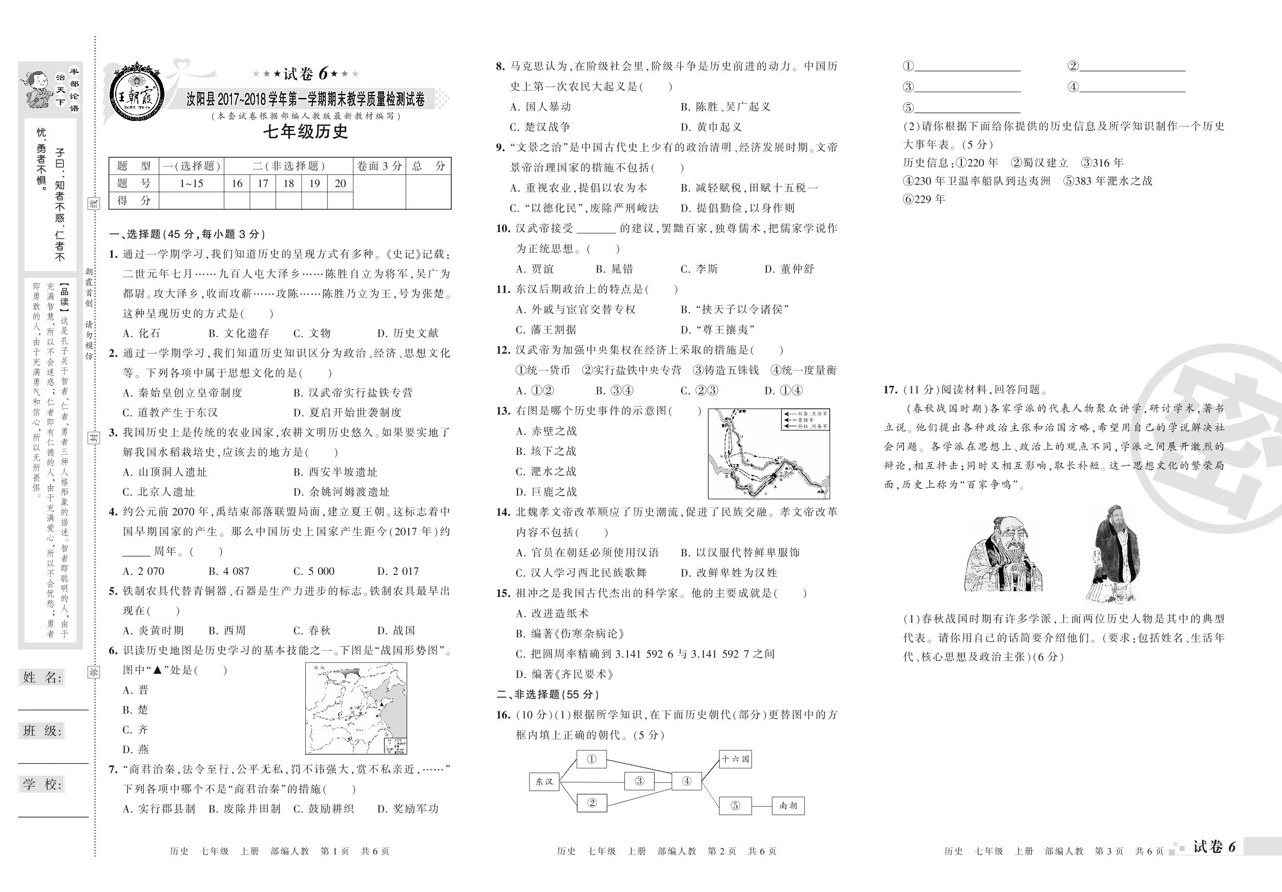 2017-2018学年第一学期洛阳市汝阳县七年级历史试卷(人教版)【6】