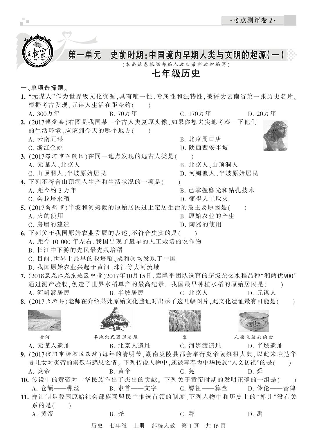 王朝霞期末小卷七年级上册历史(人教版)_R210810105401【0】