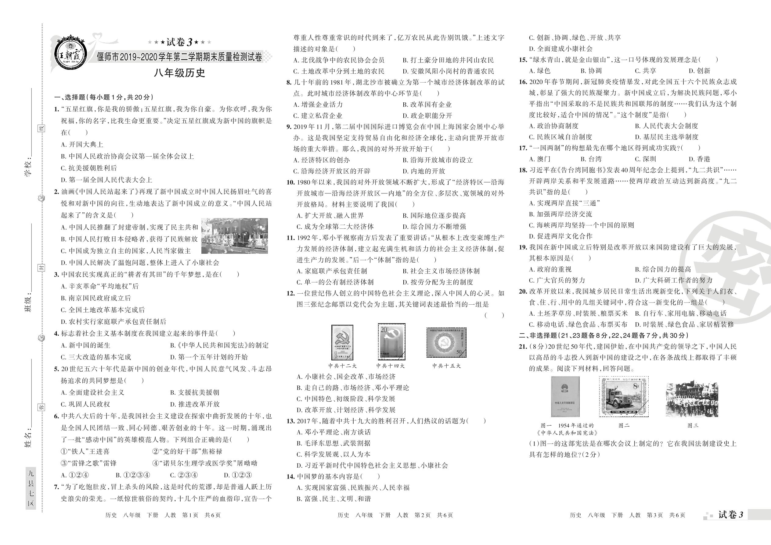 2019-2020学年第二学期偃师市八年级历史试卷(人教版)【3】