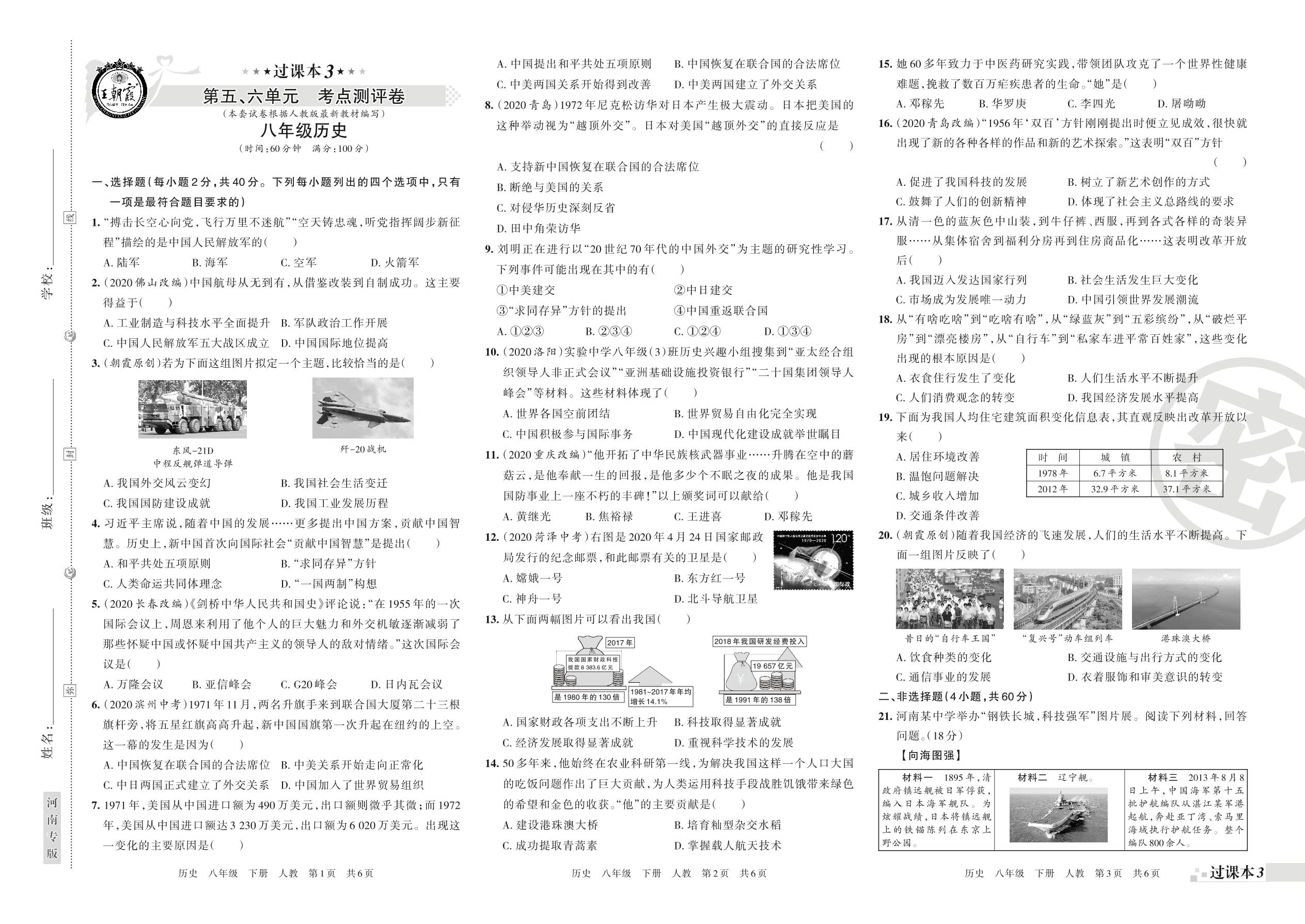 王朝霞期末过课本——第五、六单元 考点测评卷八年级下册历史(人教版)_R210810114639【0】