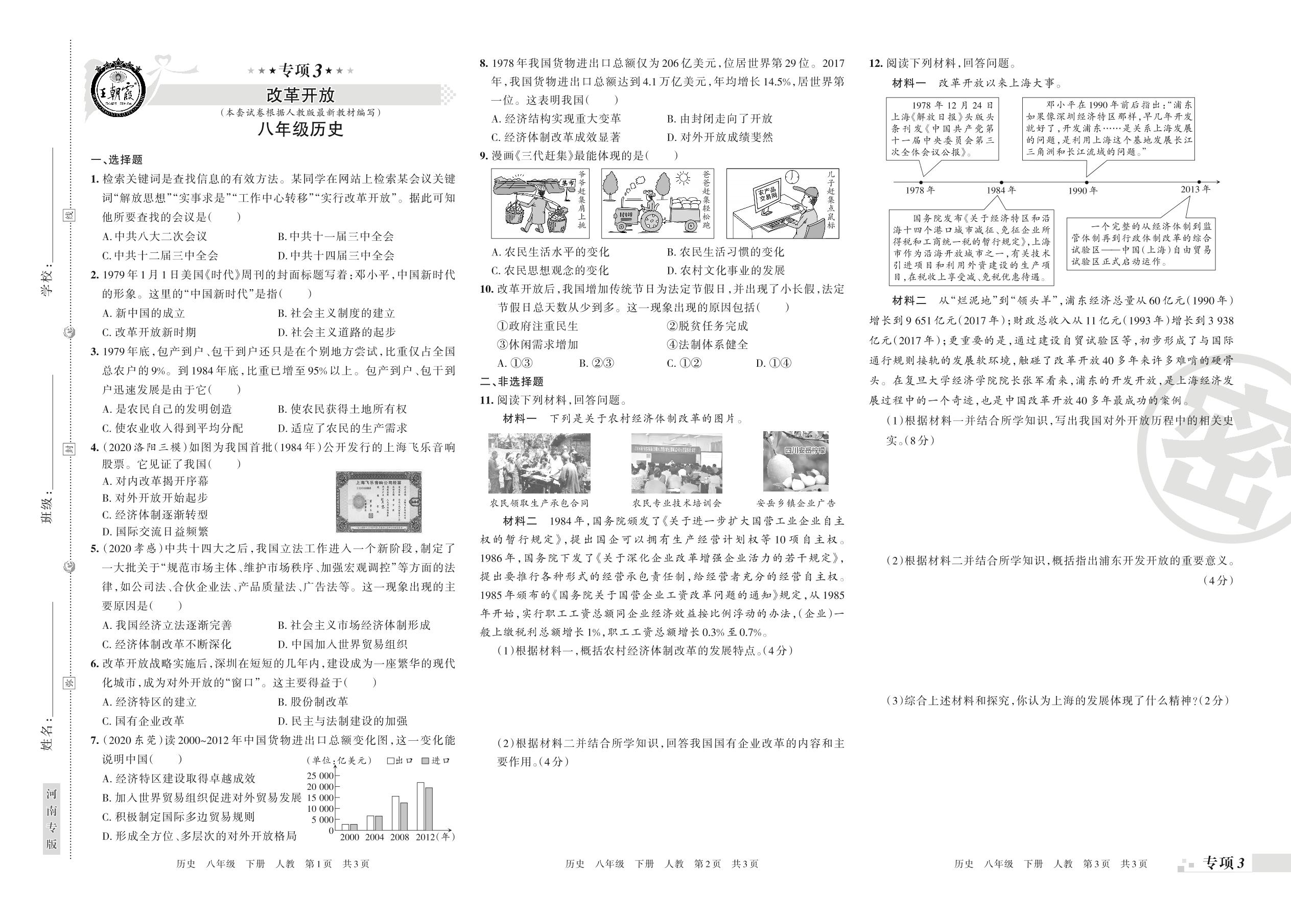 王朝霞期末专项卷——改革开放、新中国的外交成就八年级下册历史(人教版)_R210810114652【0】