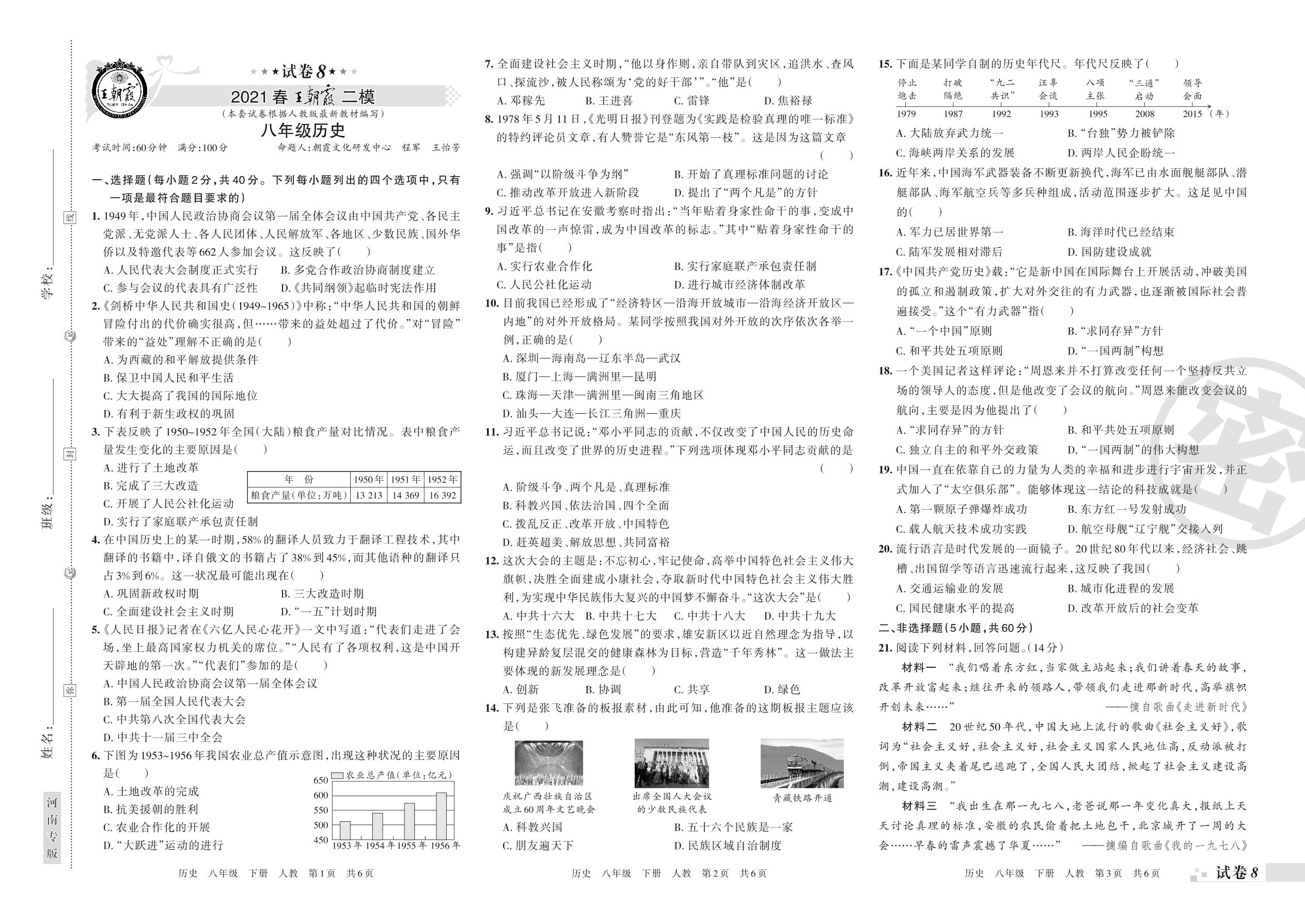 王朝霞期末模拟卷八年级下册历史(人教版)_R210810114814【8】