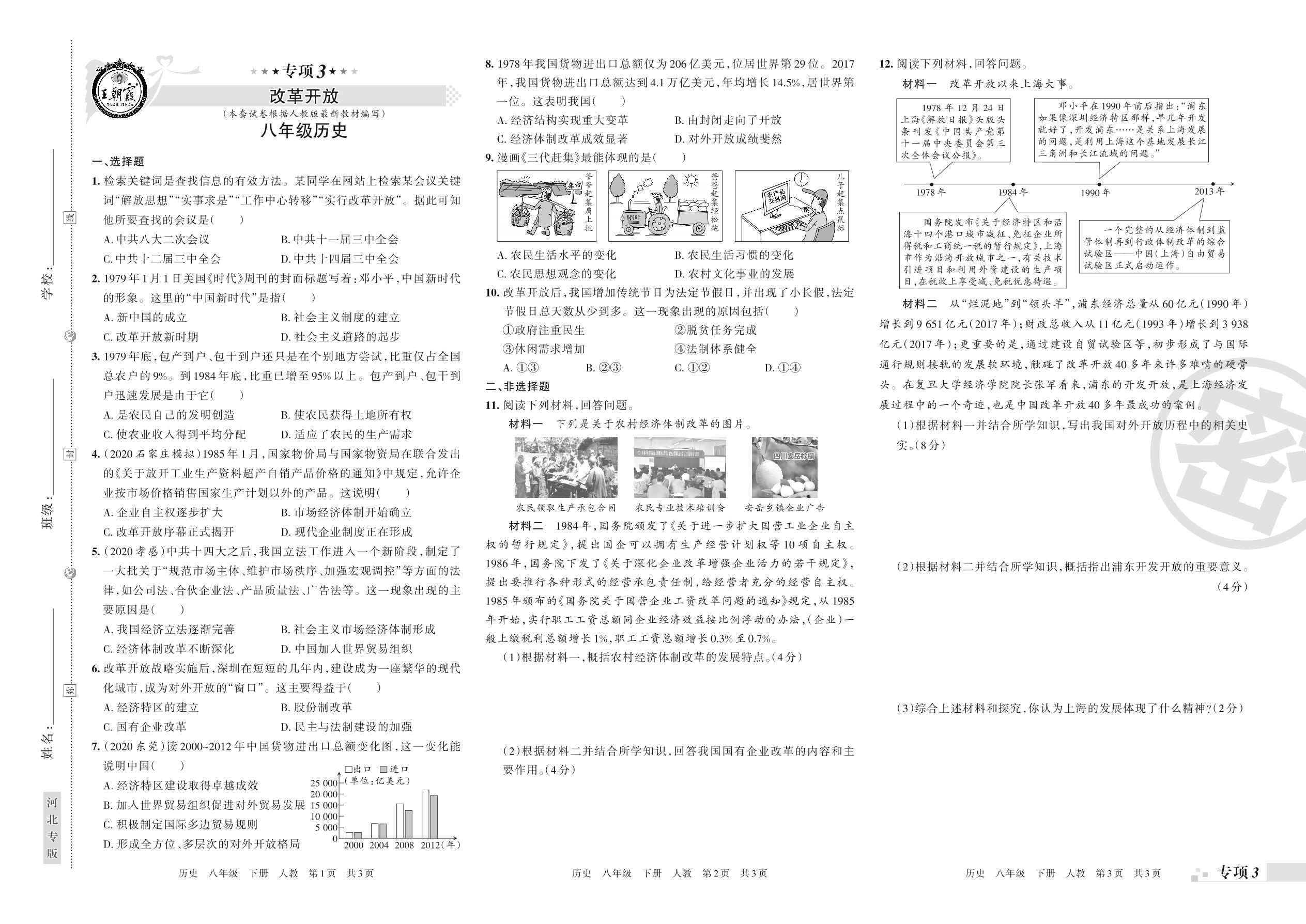王朝霞期末专项卷——改革开放、新中国的外交成就八年级下册历史(人教版)【0】