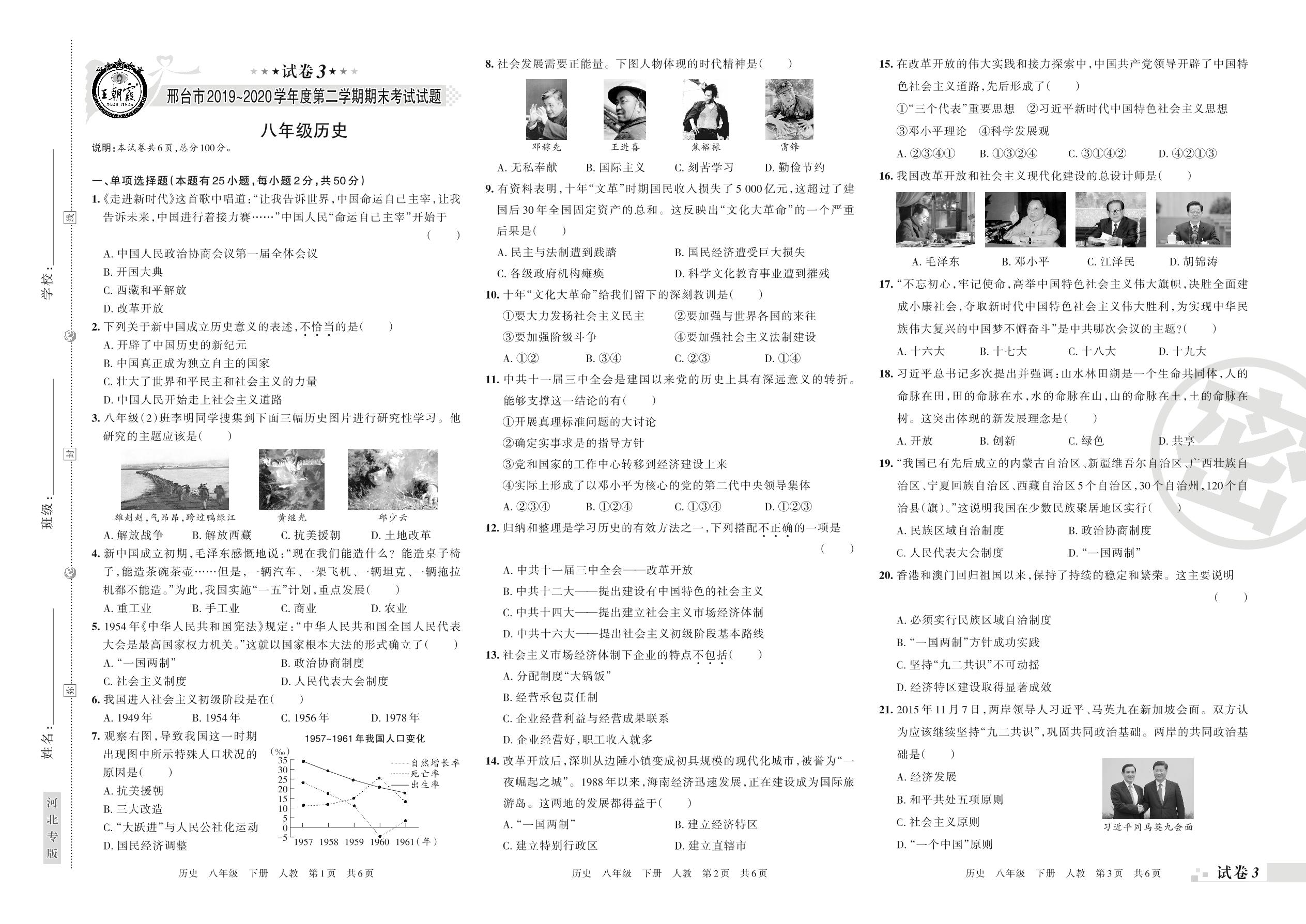 2019-2020学年第二学期邢台市八年级历史试卷(人教版)【3】