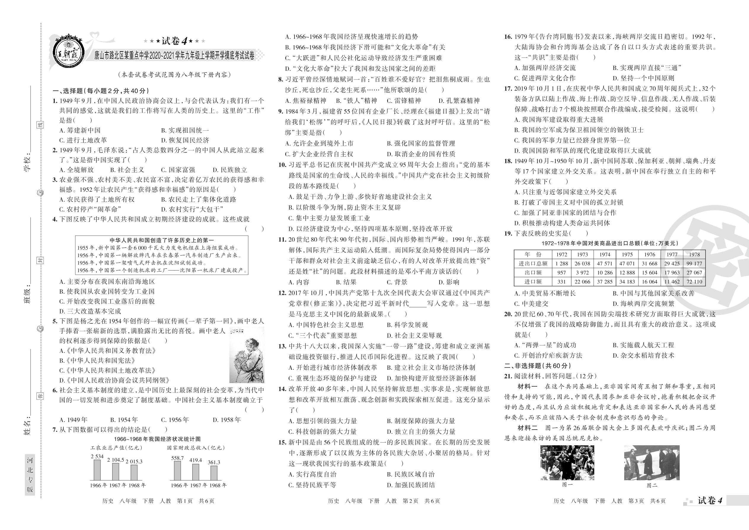 2020-2021学年第二学期唐山市路北区八年级历史试卷(人教版)【4】