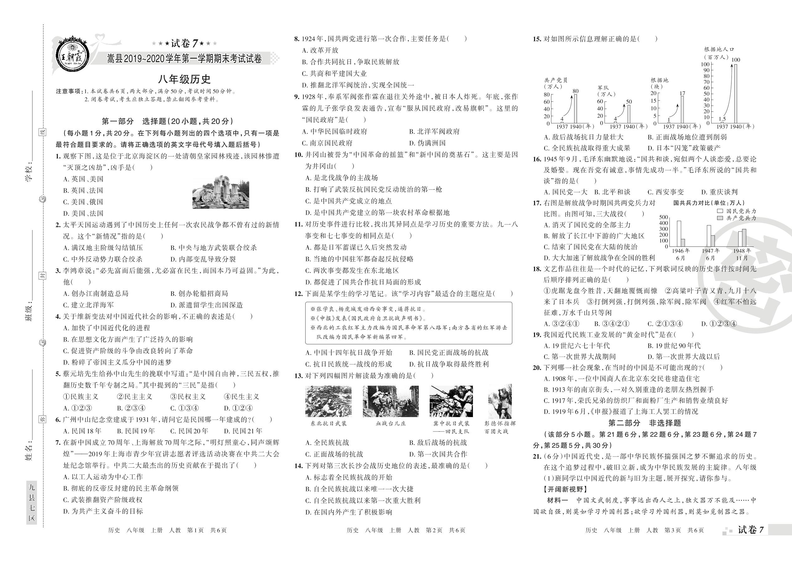 2019-2020学年第一学期洛阳市嵩县八年级历史试卷(人教版)【7】