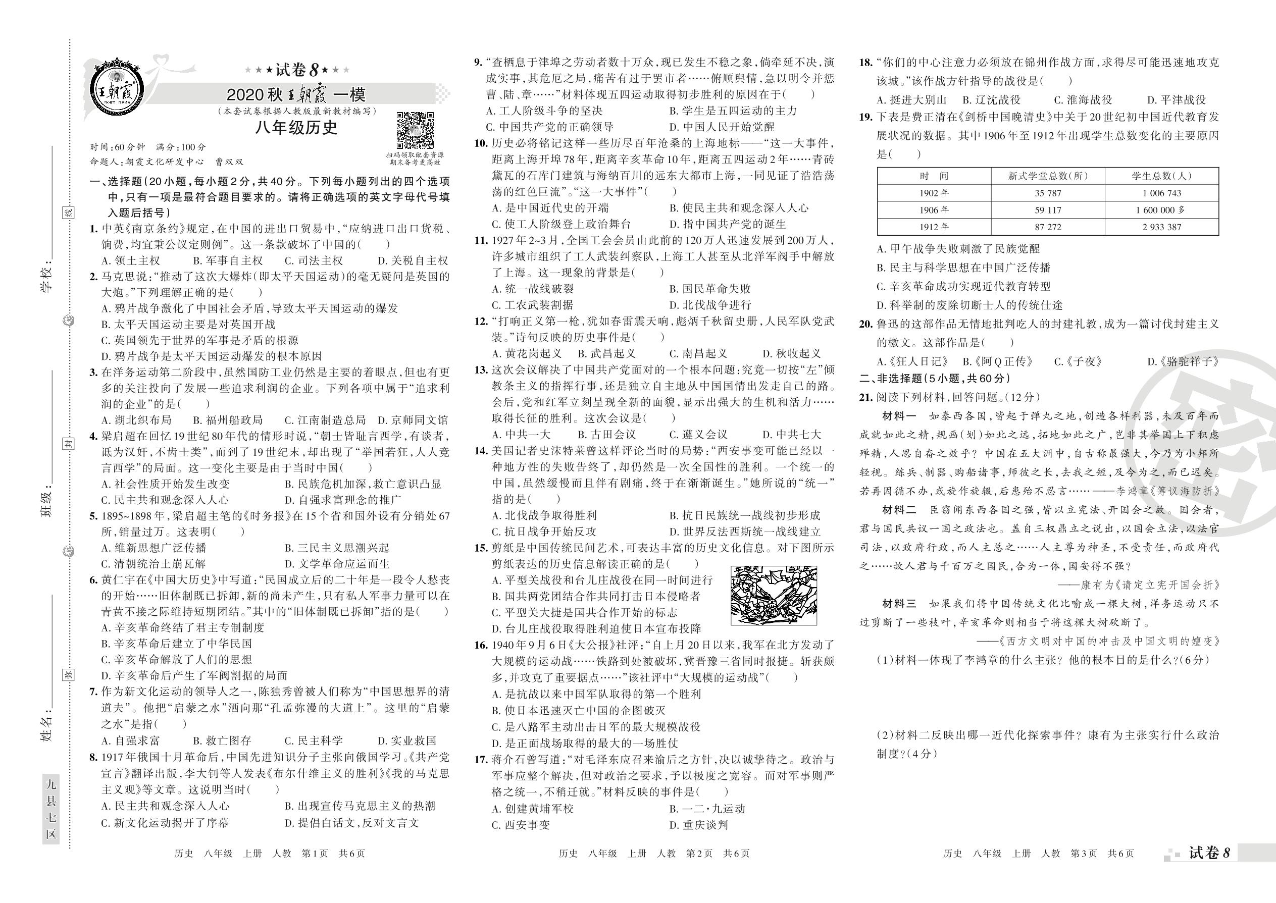 王朝霞期末模拟卷八年级上册历史(人教版)_R210810115200【8】