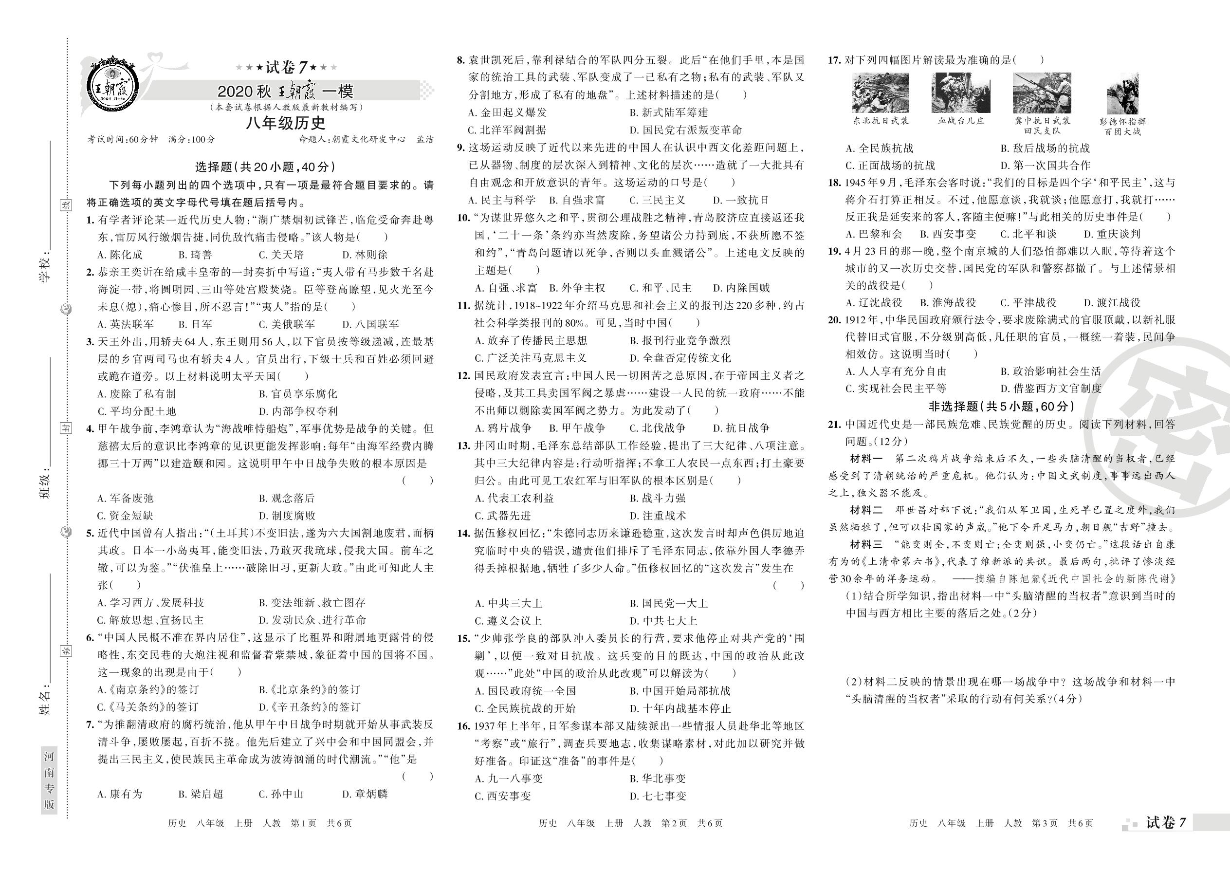 王朝霞期末模拟卷八年级上册历史(人教版)_R210810115547【7】