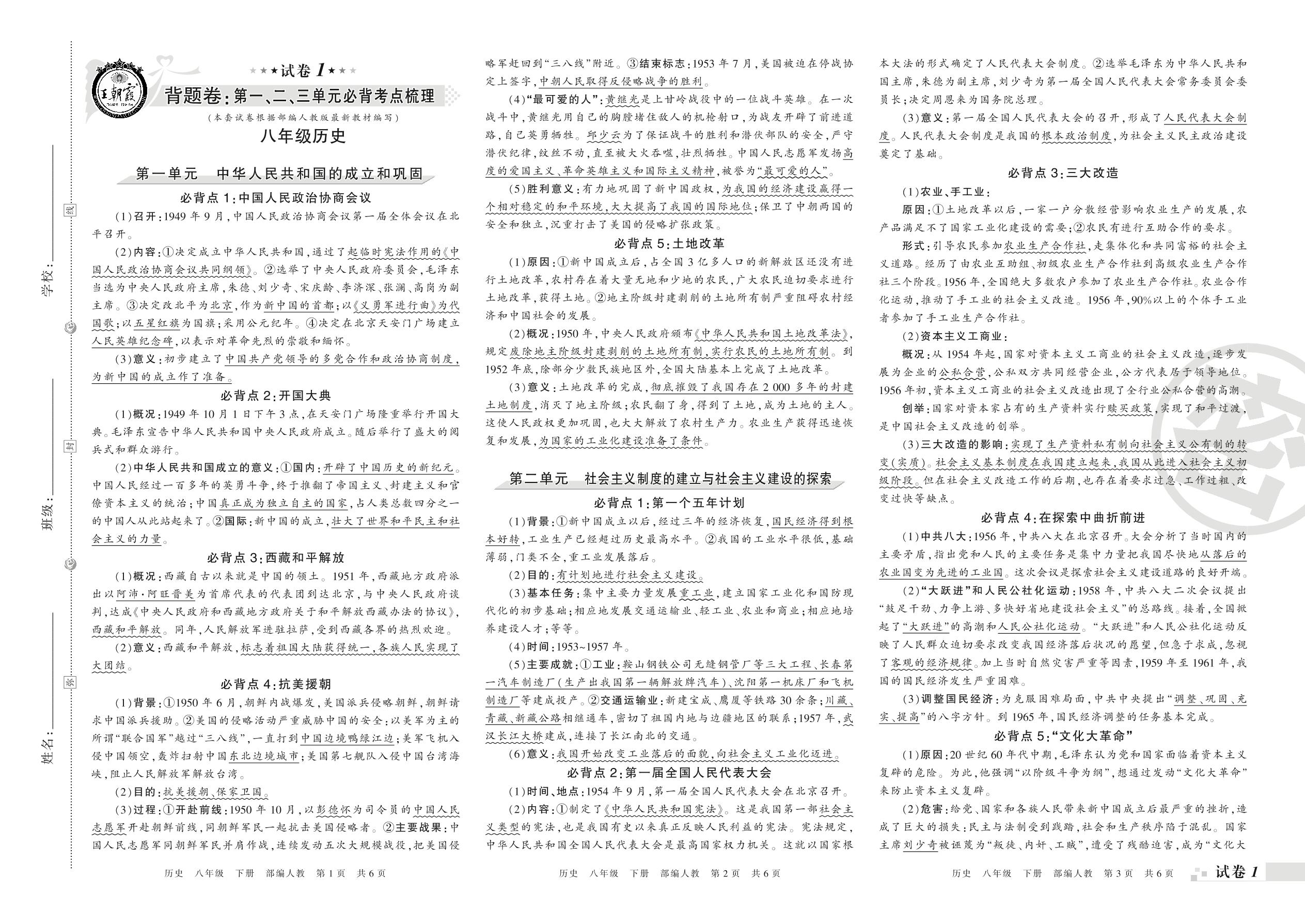 王朝霞期末背题卷——第一、二、三单元必背考点梳理八年级下册历史(人教版)_R210810115605【0】