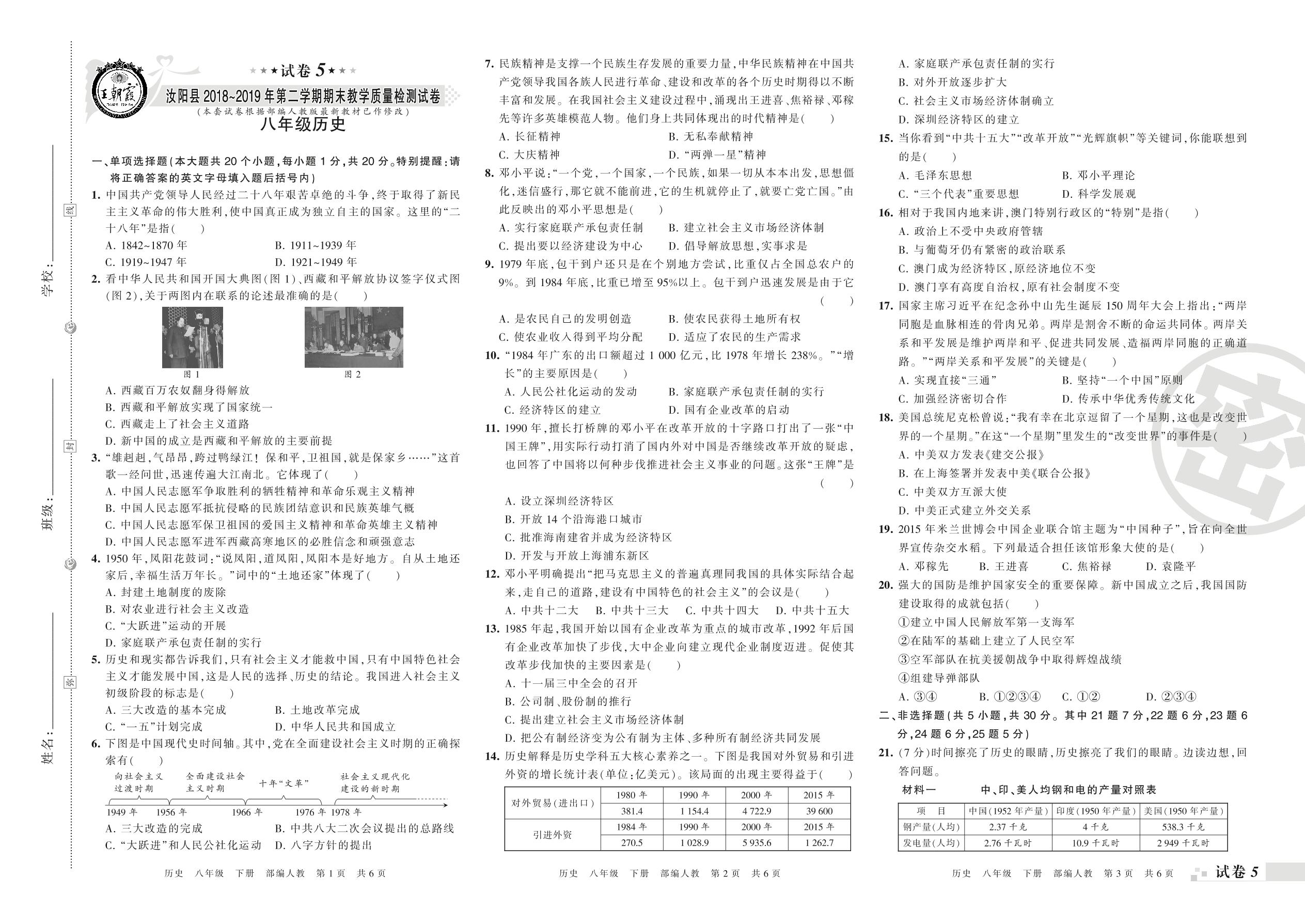 2018-2019学年第二学期洛阳市汝阳县八年级历史试卷(人教版)【5】