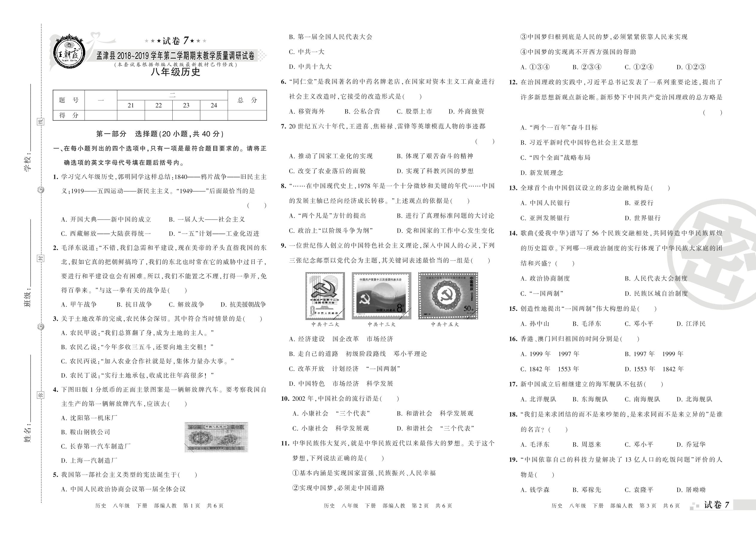 2018-2019学年第二学期洛阳市孟津县八年级历史试卷(人教版)【7】