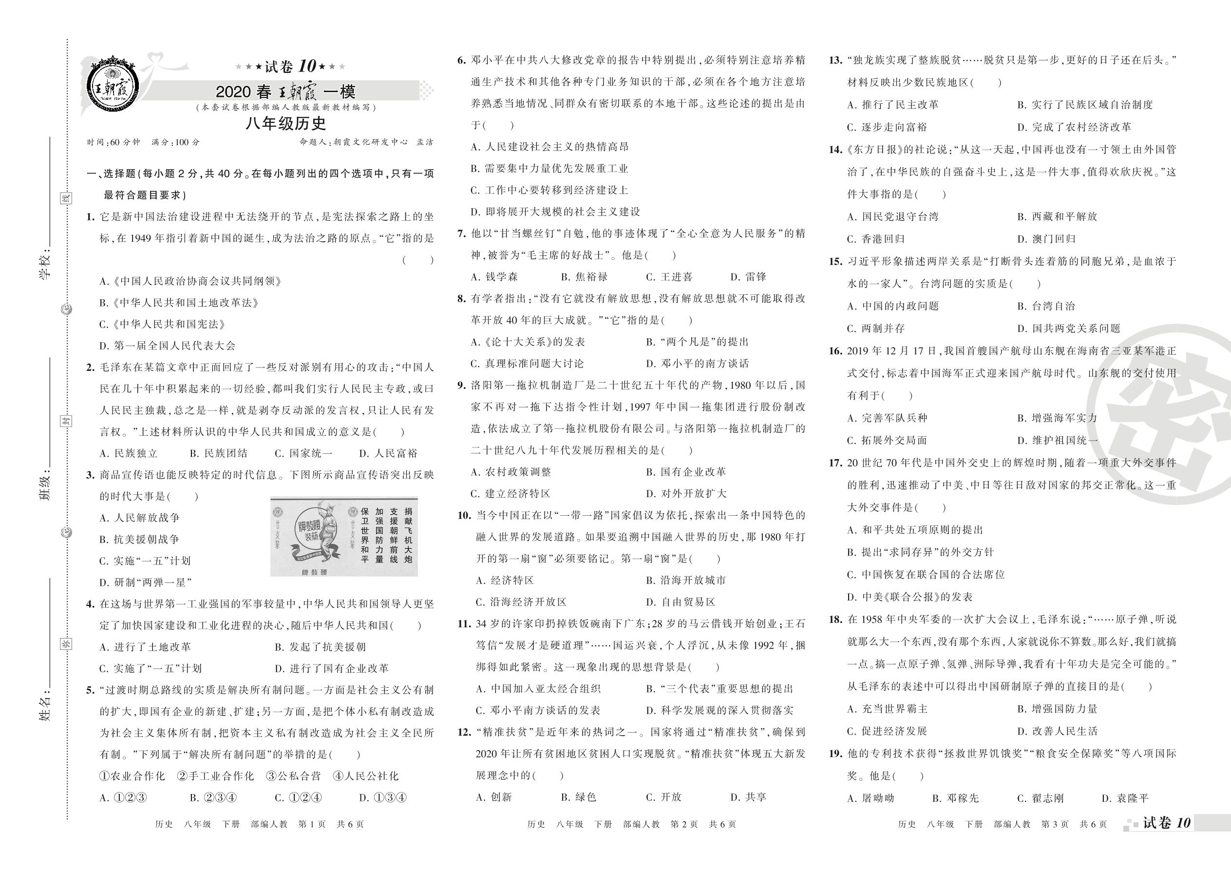 王朝霞期末模拟卷八年级下册历史(人教版)_R210810115858【10】