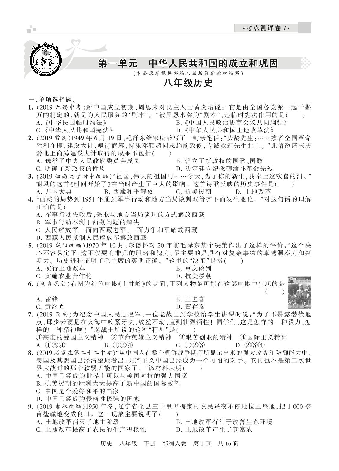 王朝霞期末小卷——考点测评卷八年级下册历史(人教版)_R210810115935【0】
