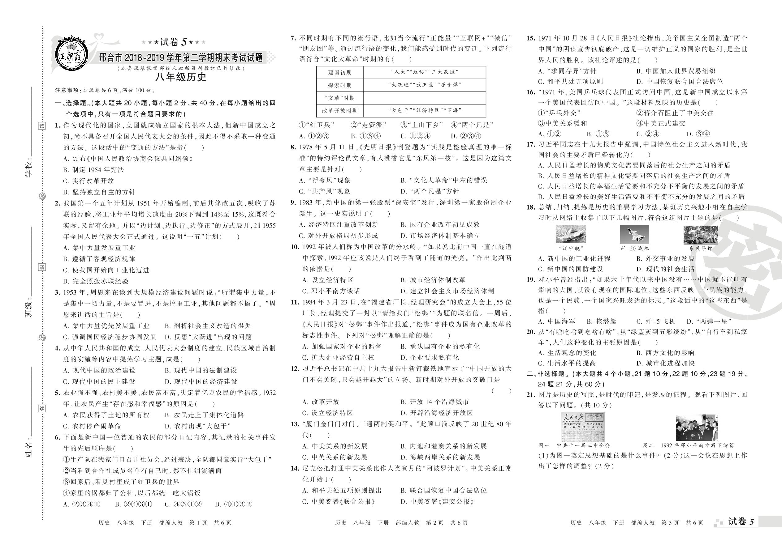 2018-2019学年第二学期邢台市八年级历史试卷(人教版)【5】