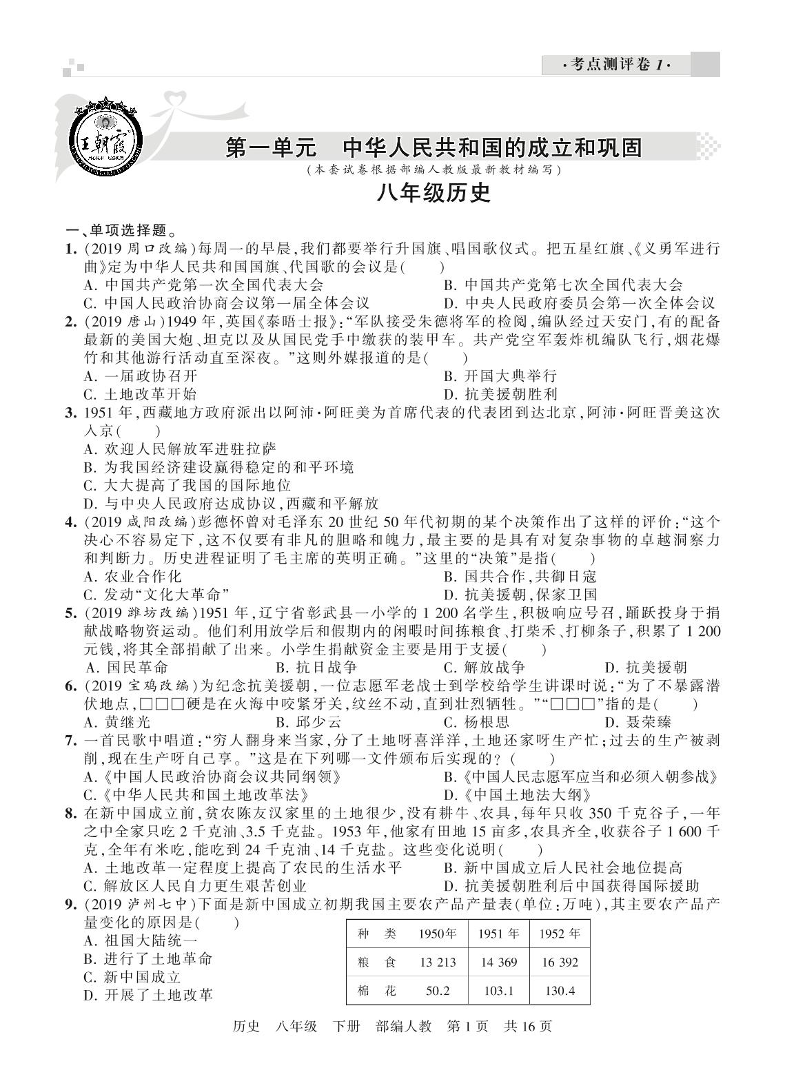 王朝霞期末小卷——考点测评卷八年级下册历史(人教版)_R210810120125【0】