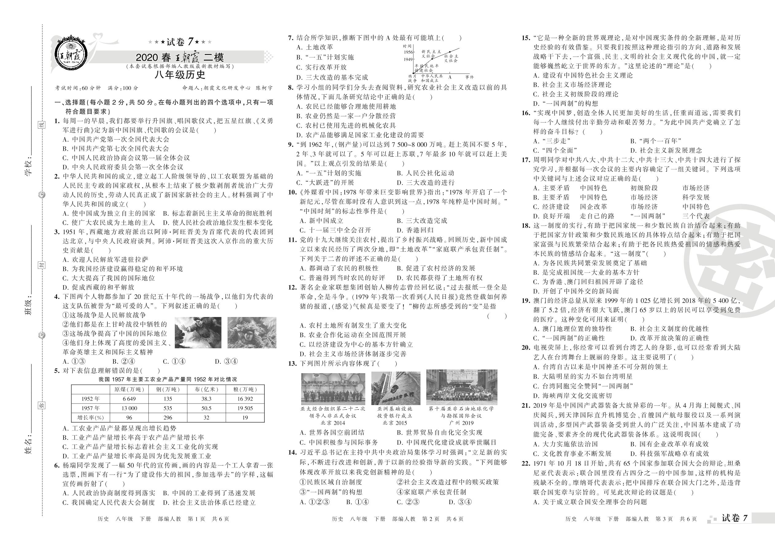 王朝霞期末模拟卷八年级下册历史(人教版)_R210810120418【7】