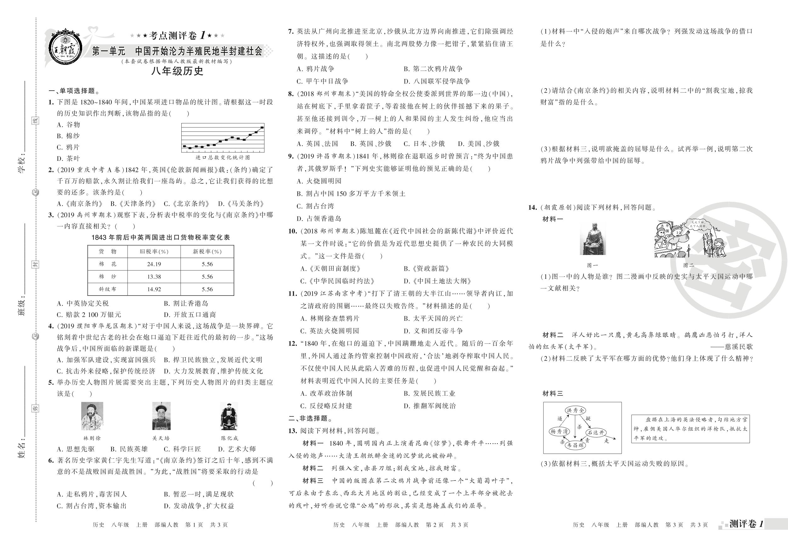 王朝霞期末小卷——第一、二单元考点测评卷八年级上册历史(人教版)【0】