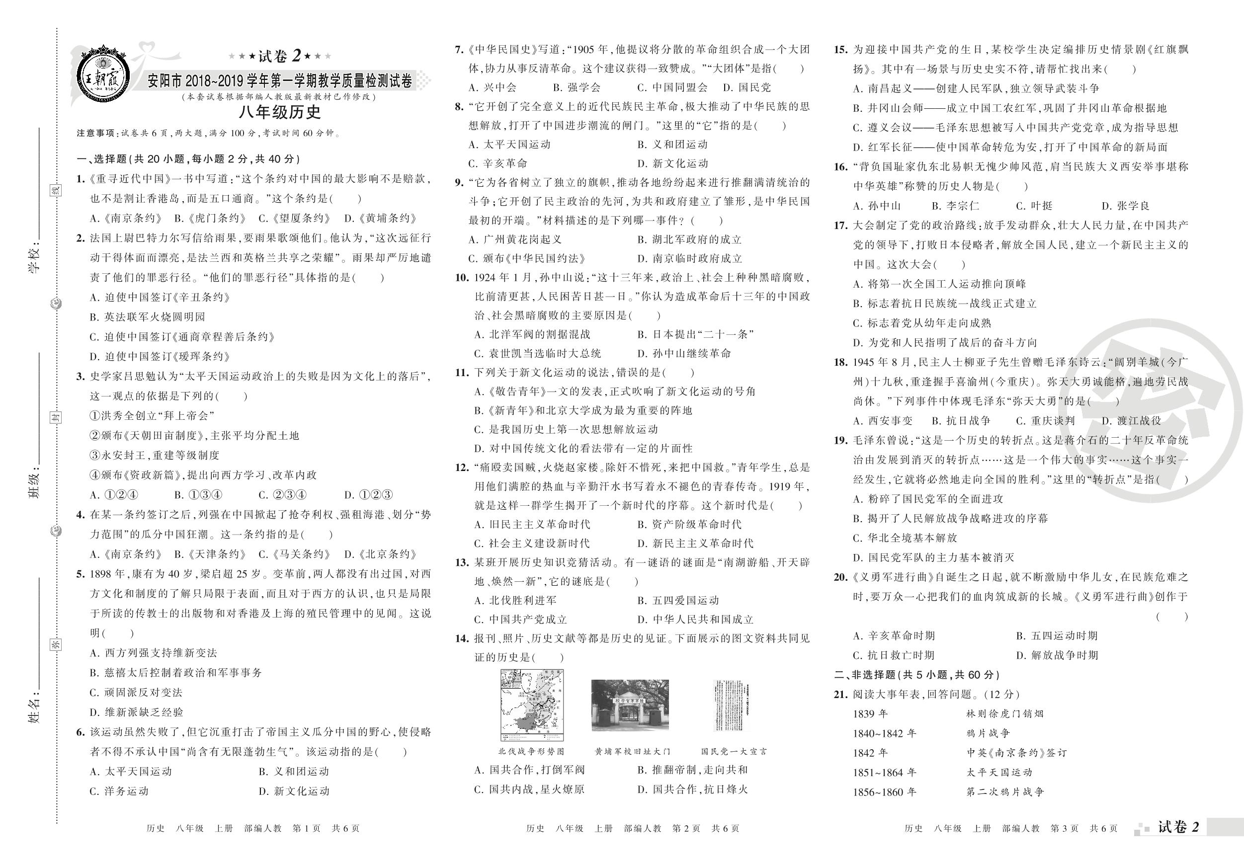 2018-2019学年第一学期安阳市八年级历史试卷(人教版)【2】