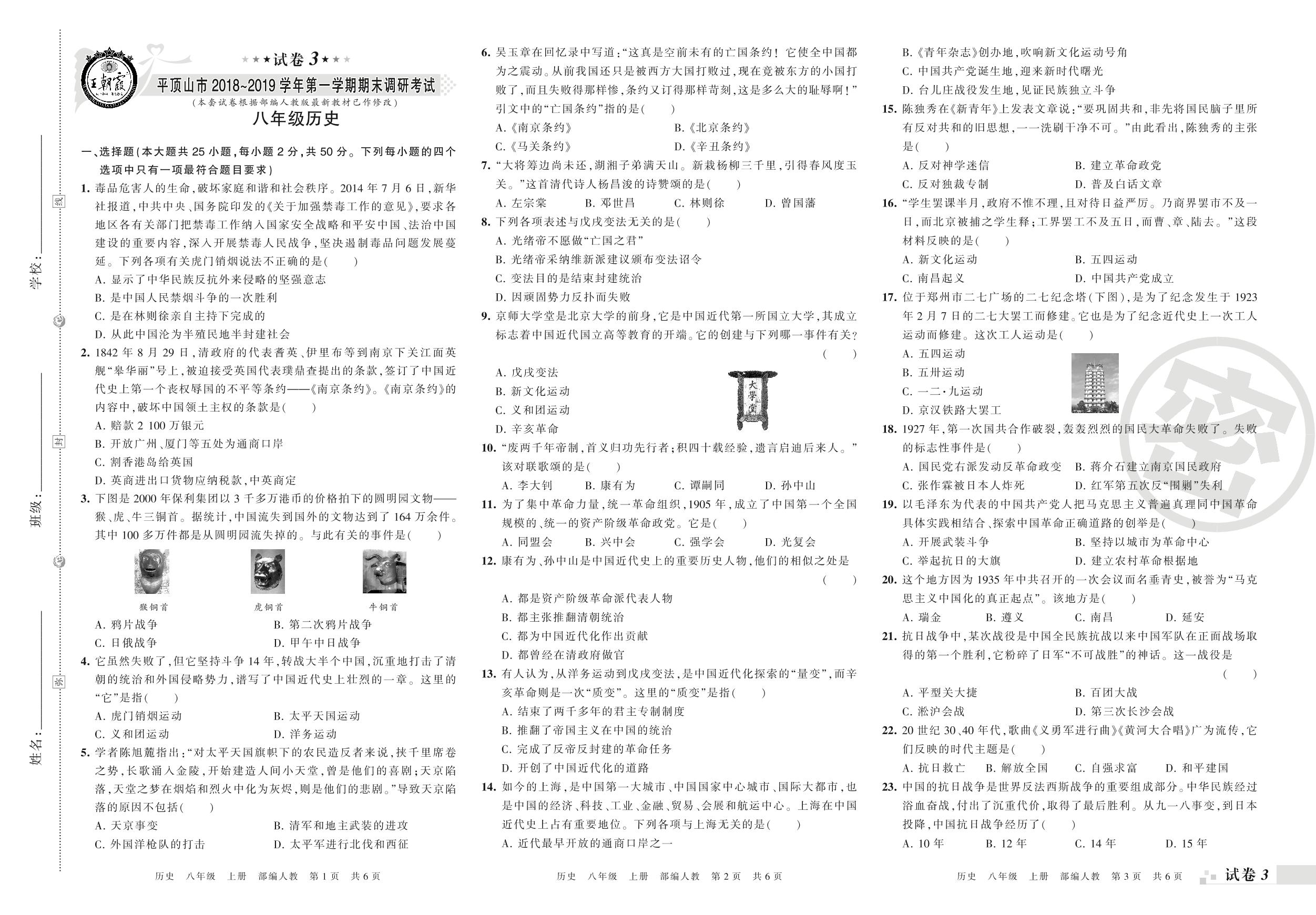 2018-2019学年第一学期平顶山市八年级历史试卷(人教版)【3】