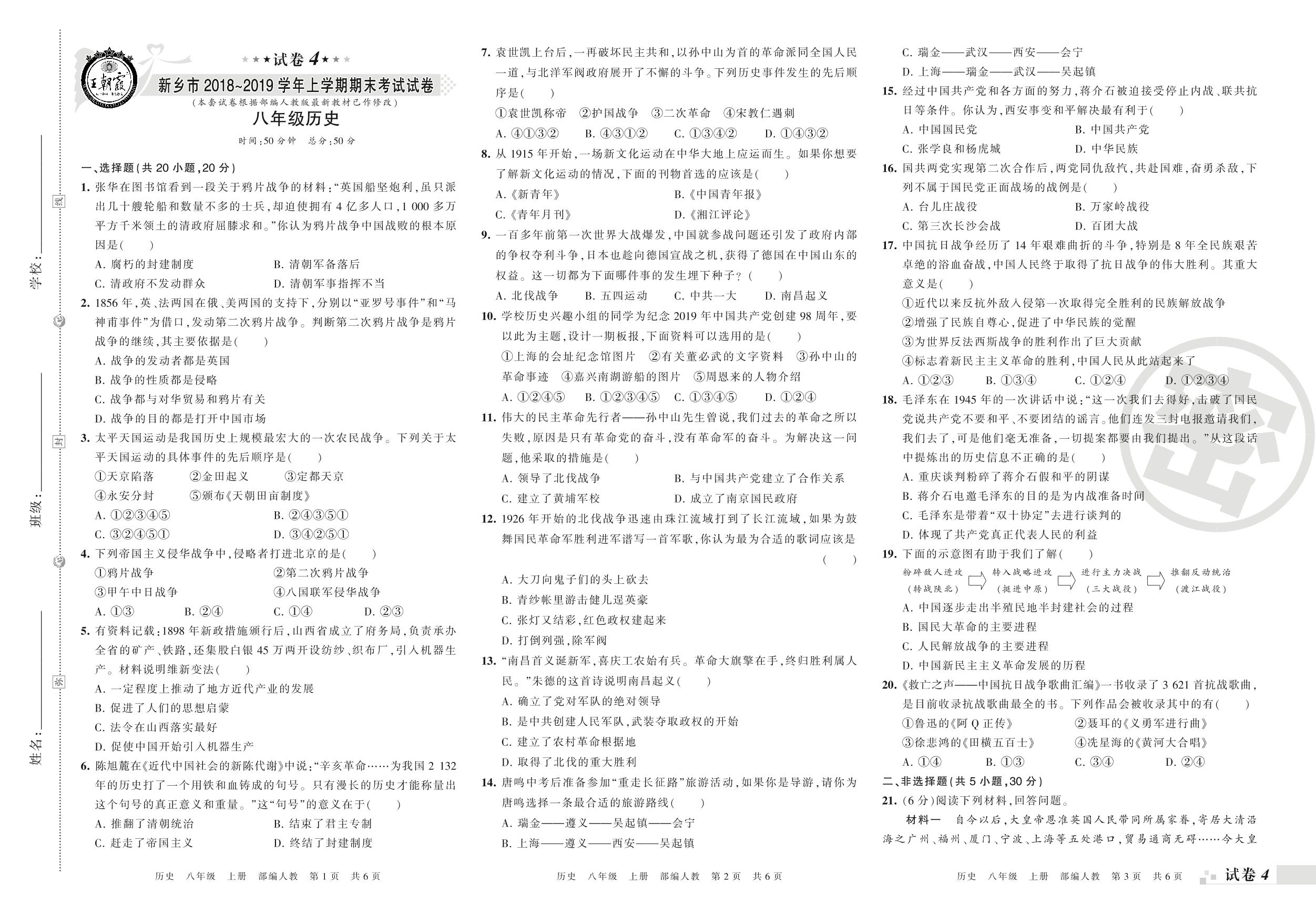 2018-2019学年第一学期新乡市八年级历史试卷(人教版)【4】