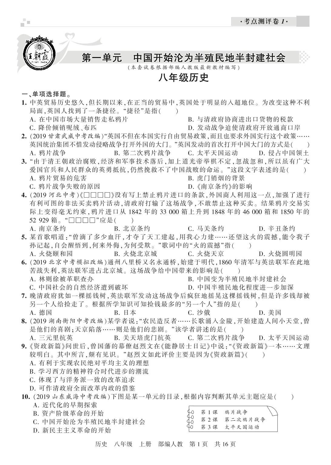 王朝霞期末小卷——考点测评八年级上册历史(人教版)_R210810120711【0】