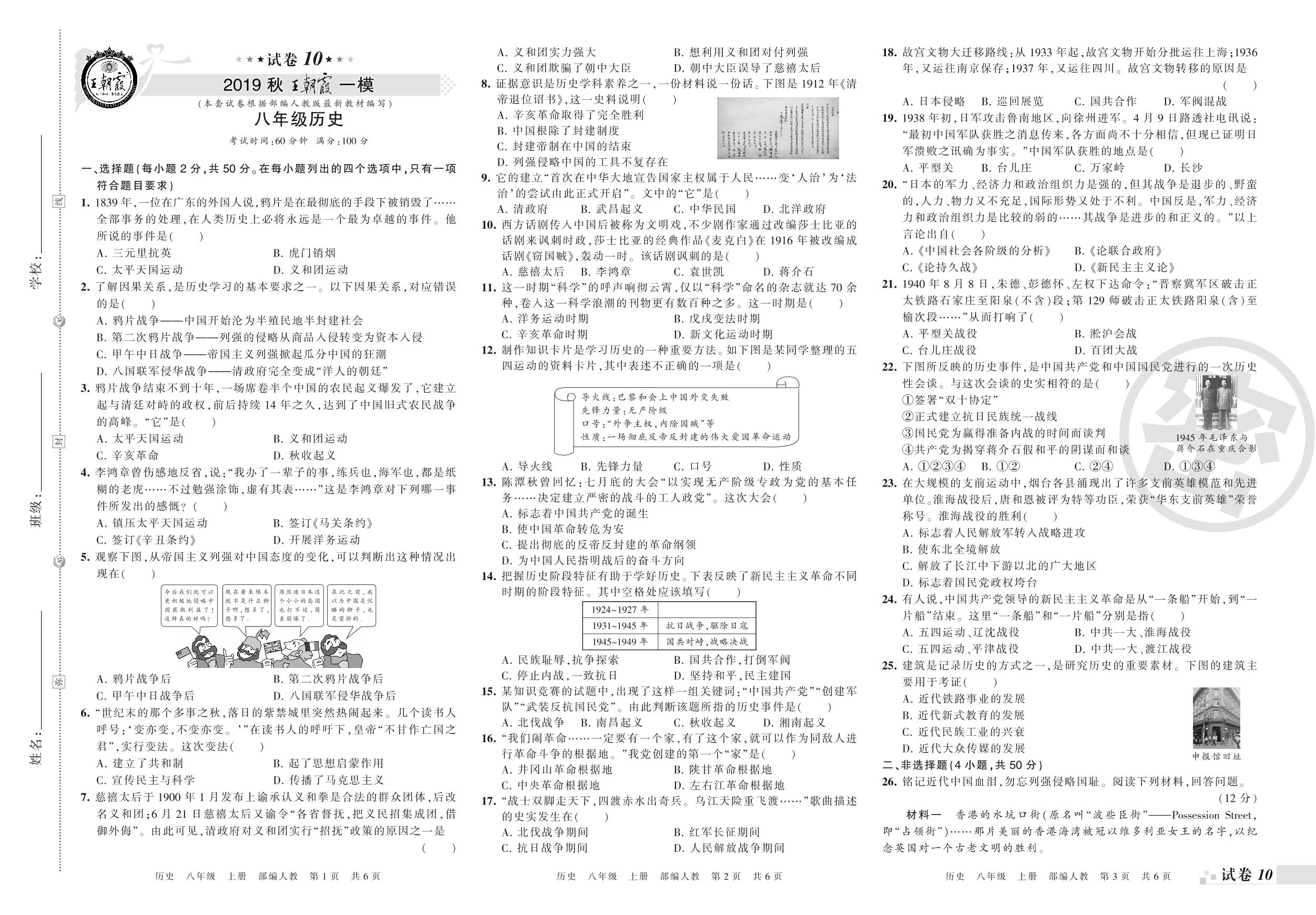 王朝霞期末模拟卷八年级上册历史(人教版)_R210810121003【10】