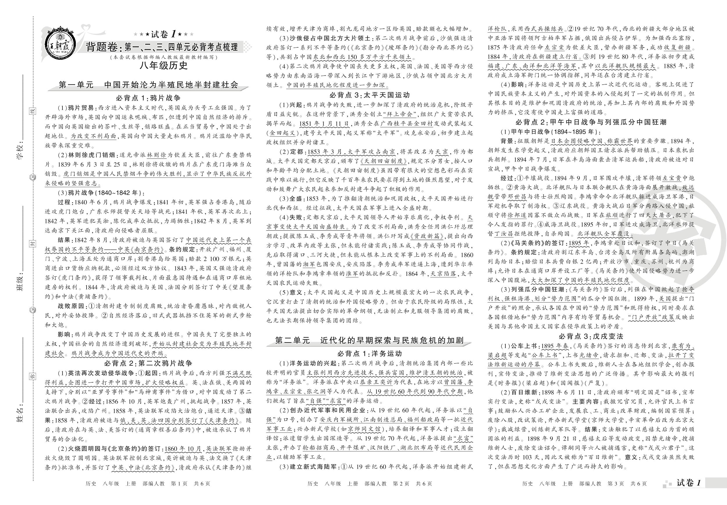 王朝霞期末背题卷——第一、二、三、四单元必背考点梳理八年级上册历史(人教版)_R210810121052【1】
