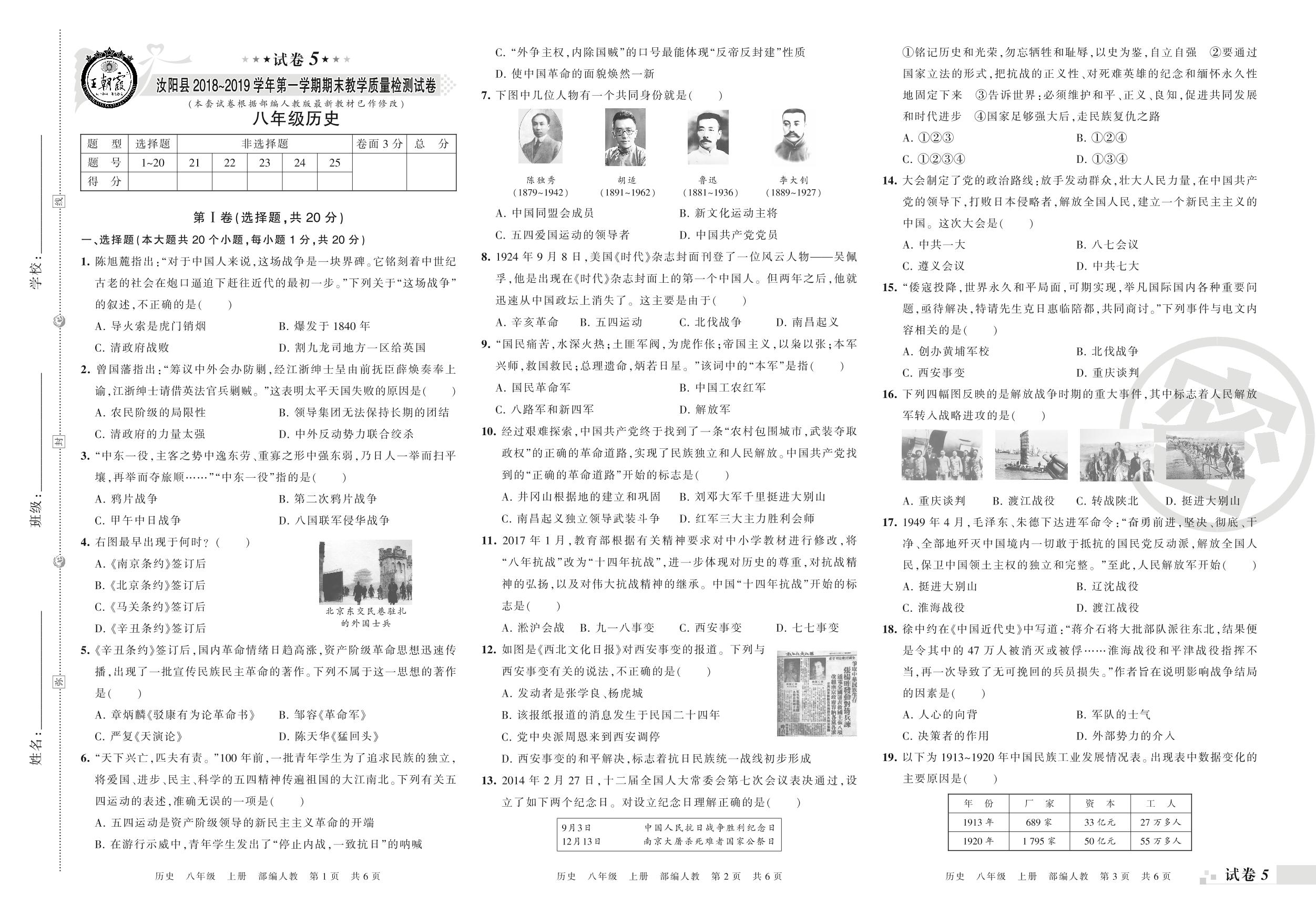 2018-2019学年第一学期洛阳市汝阳县八年级历史试卷(人教版)【5】