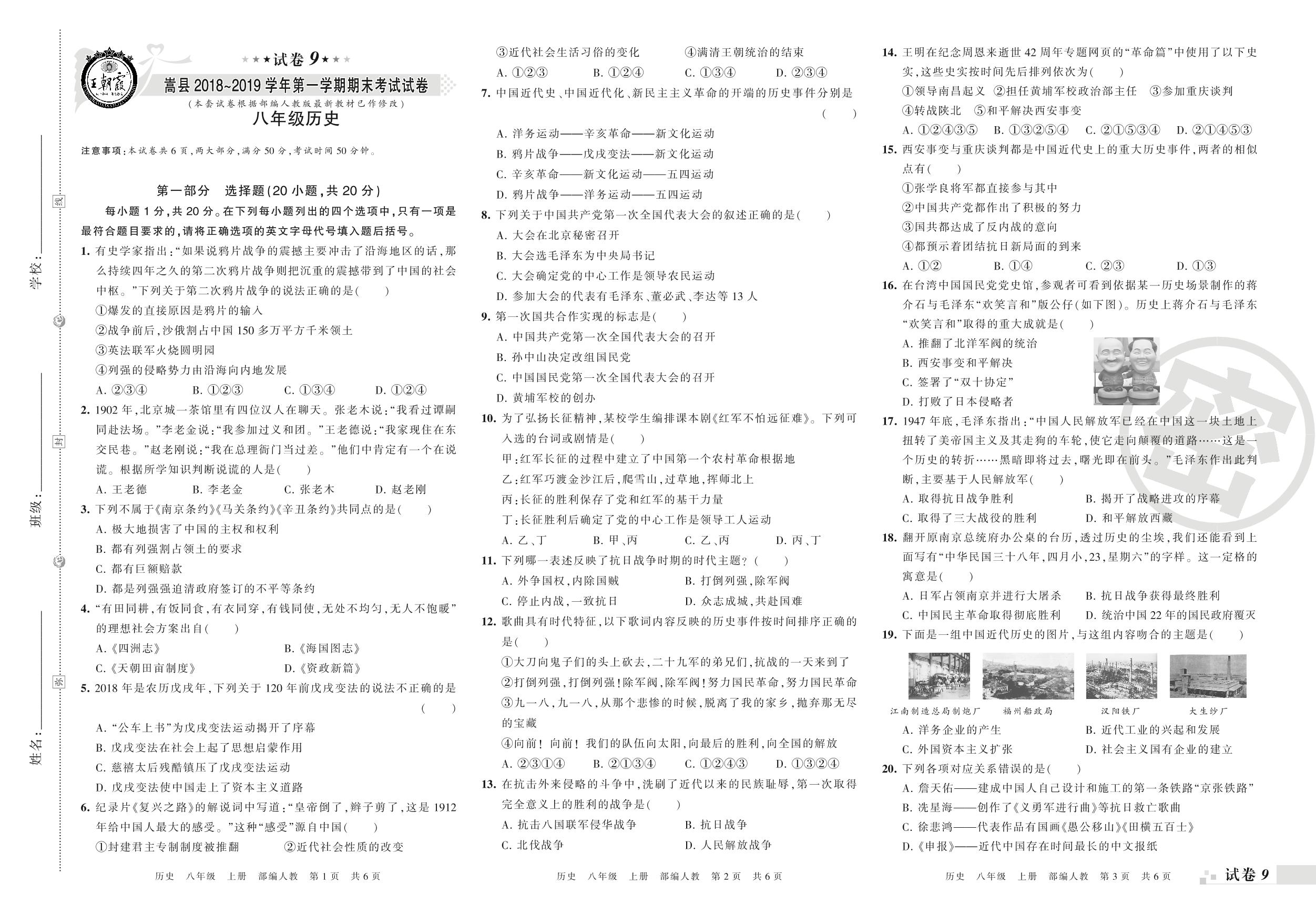 2018-2019学年第一学期洛阳市嵩县八年级历史试卷(人教版)【9】