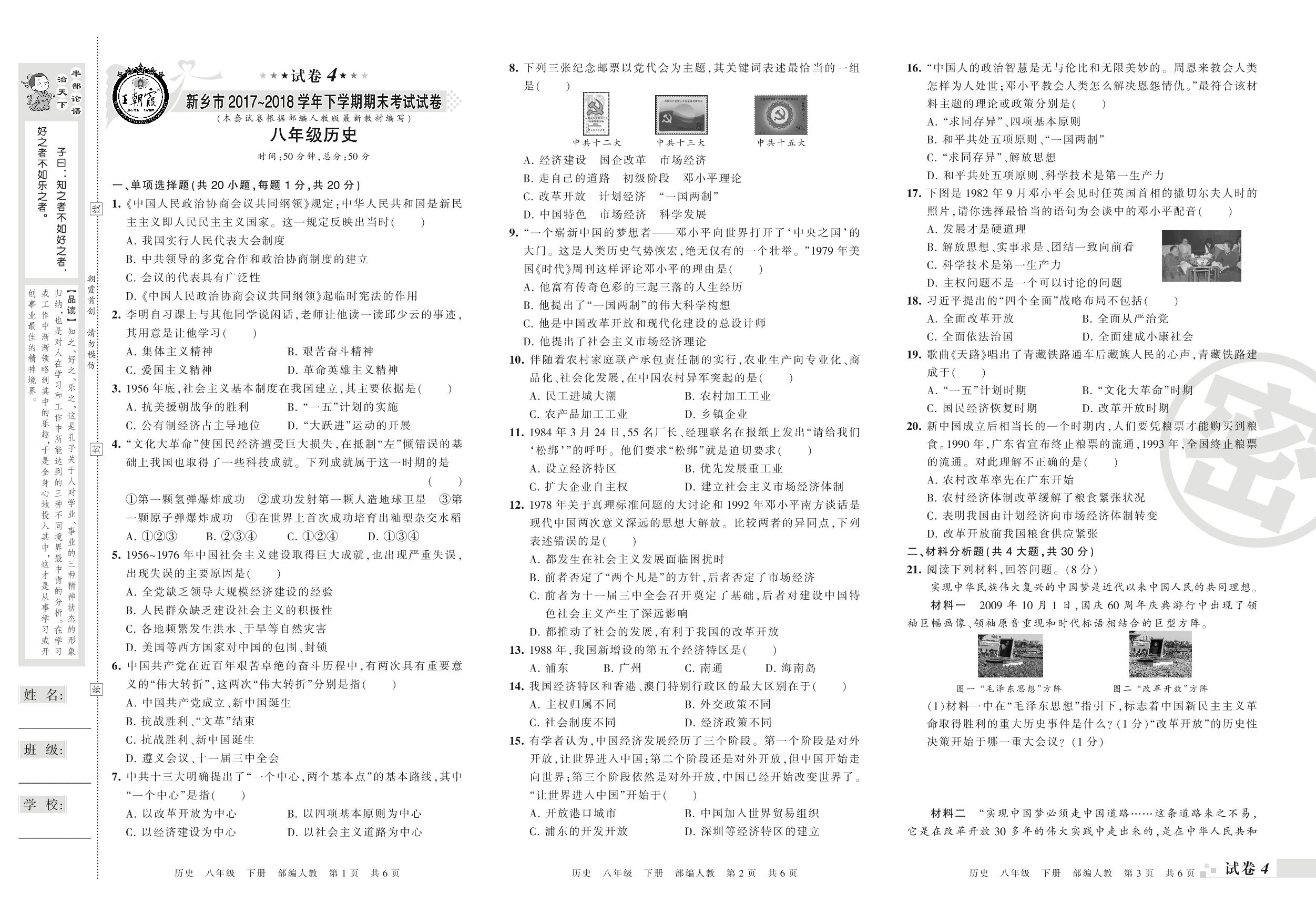 2017-2018学年第二学期新乡市八年级历史试卷(人教版)【4】
