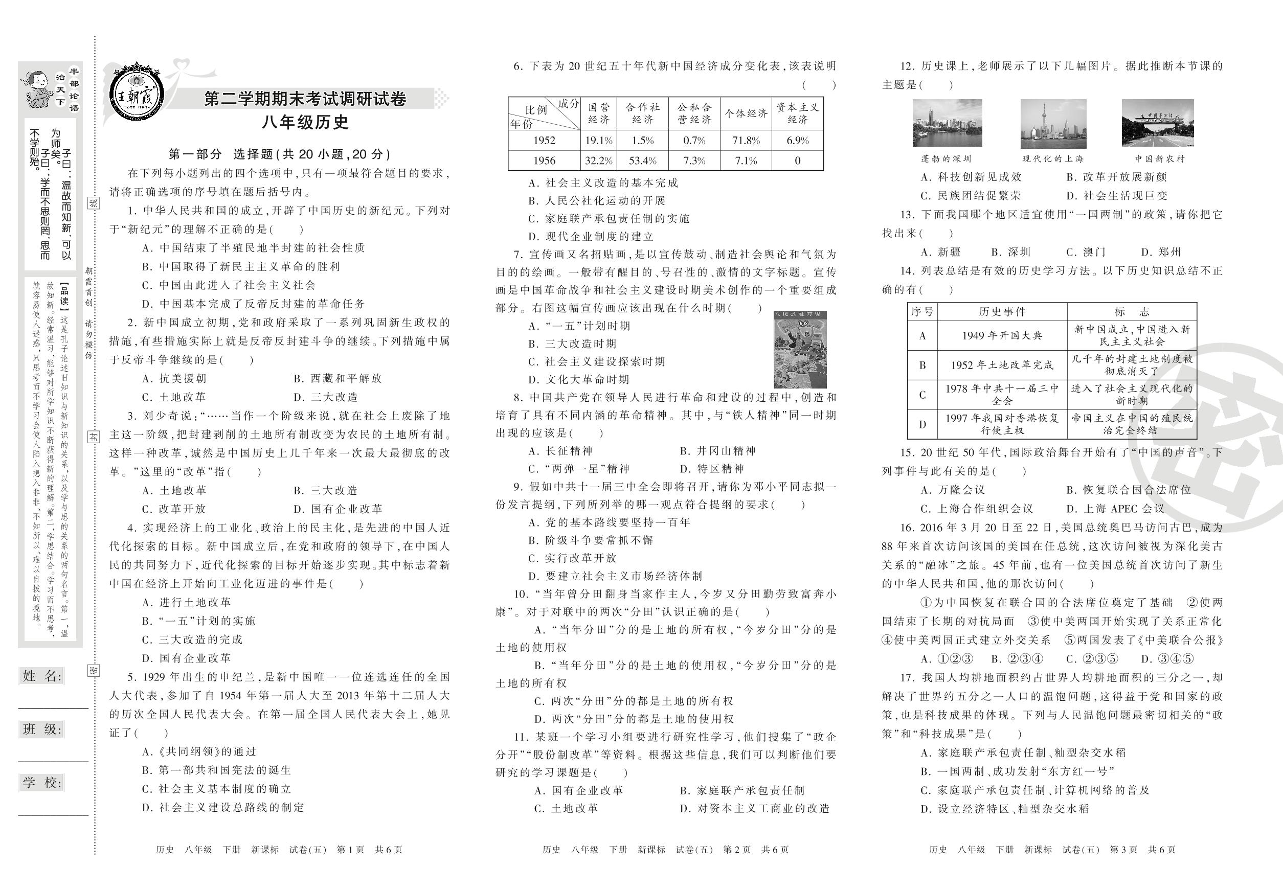 王朝霞期末调研卷八年级下册历史(新课版)【5】
