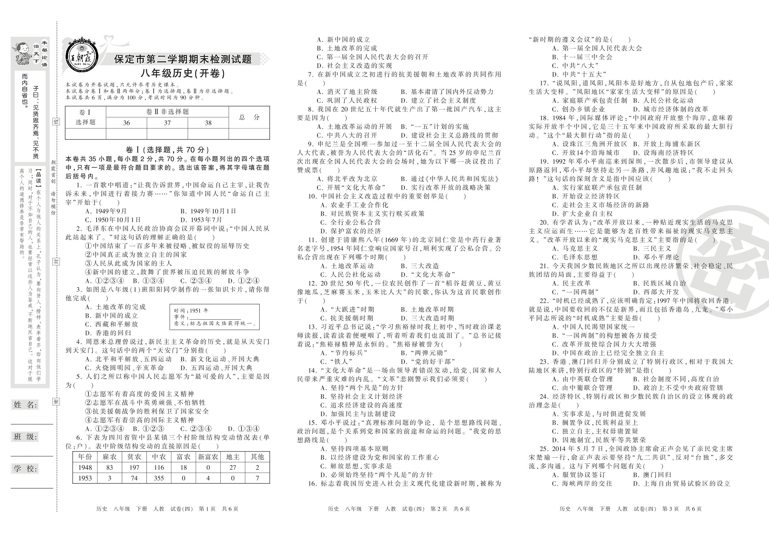 2015-2016学年第二学期保定市八年级历史试卷(人教版)【4】