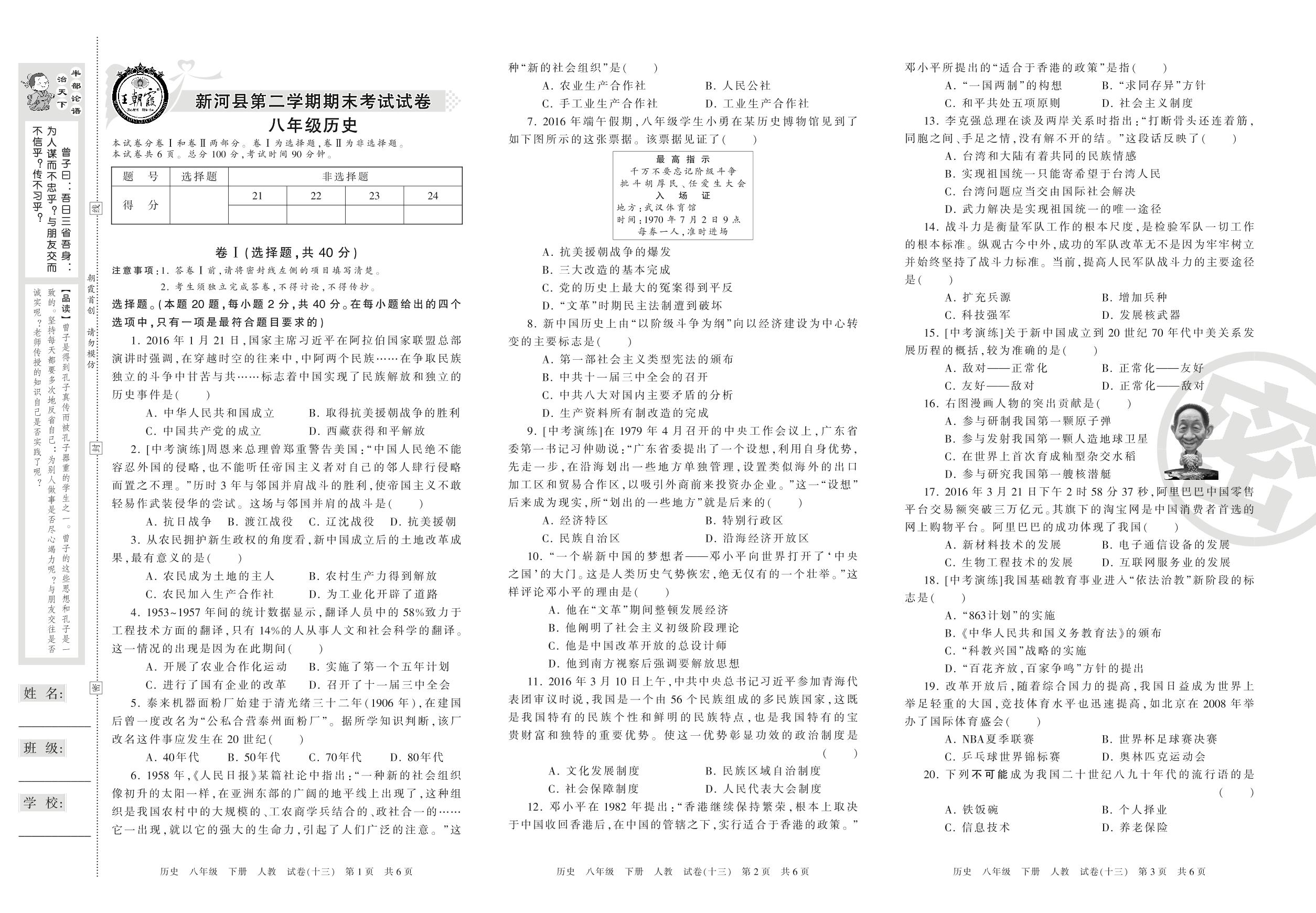 2015-2016学年第二学期邢台市新河县八年级历史试卷(人教版)【13】