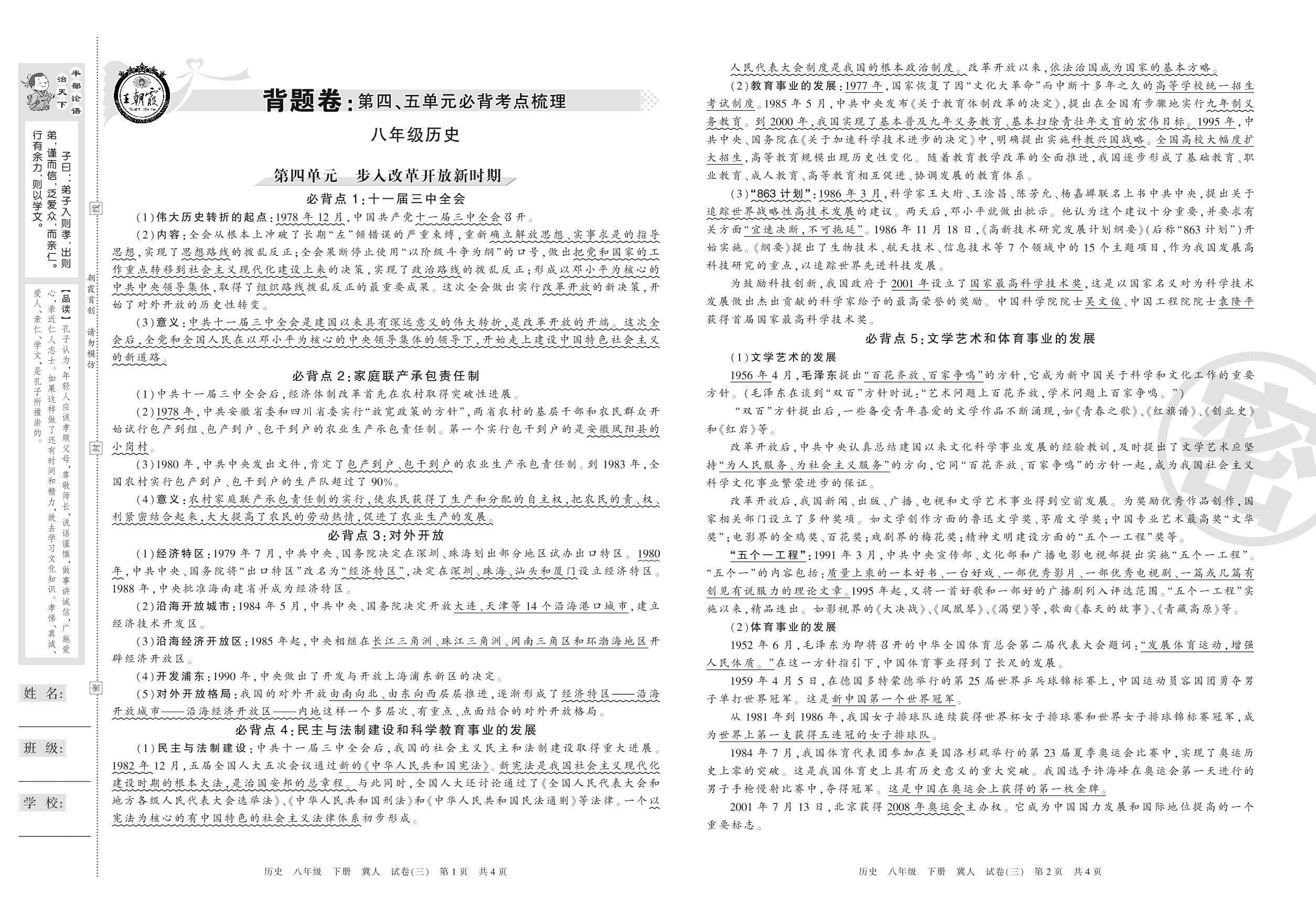 王朝霞期末背题卷八年级下册历史(冀人版)【3】