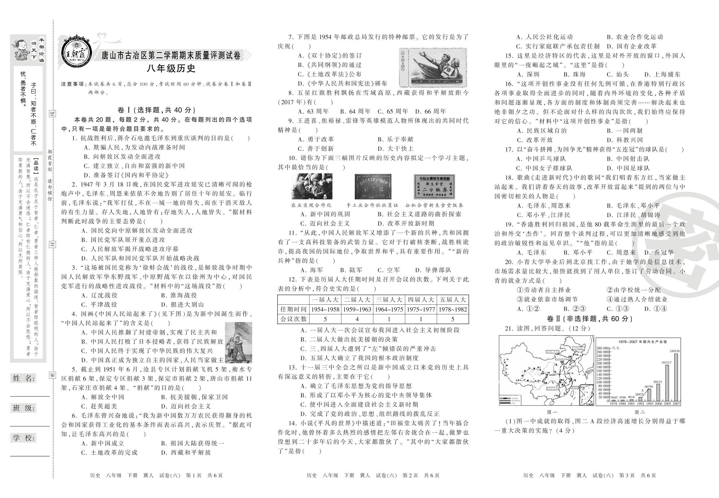 2015-2016学年第二学期唐山市古冶区八年级历史试卷(冀人版)【6】