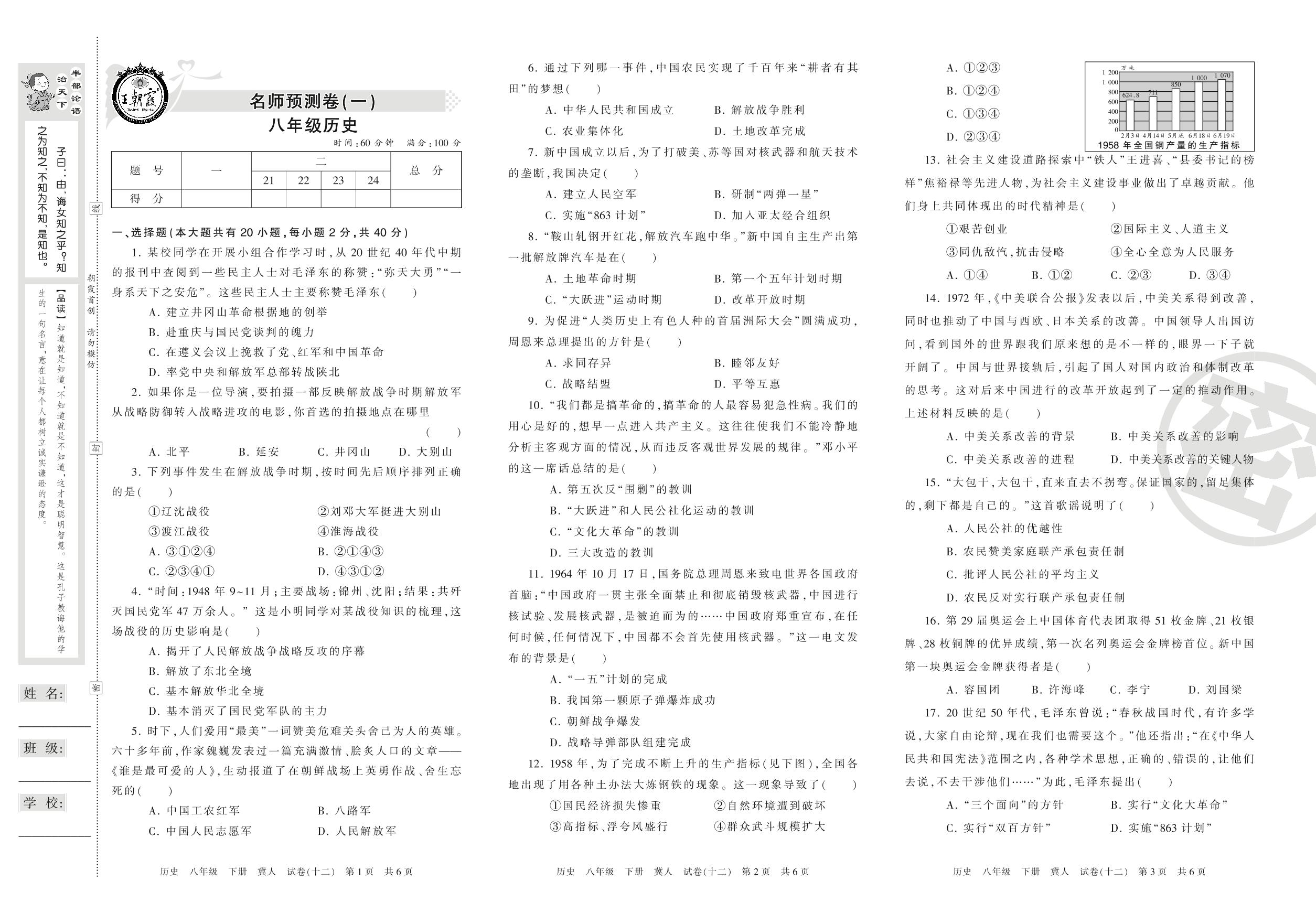 王朝霞名师期末预测卷八年级下册历史(冀人版)【12】