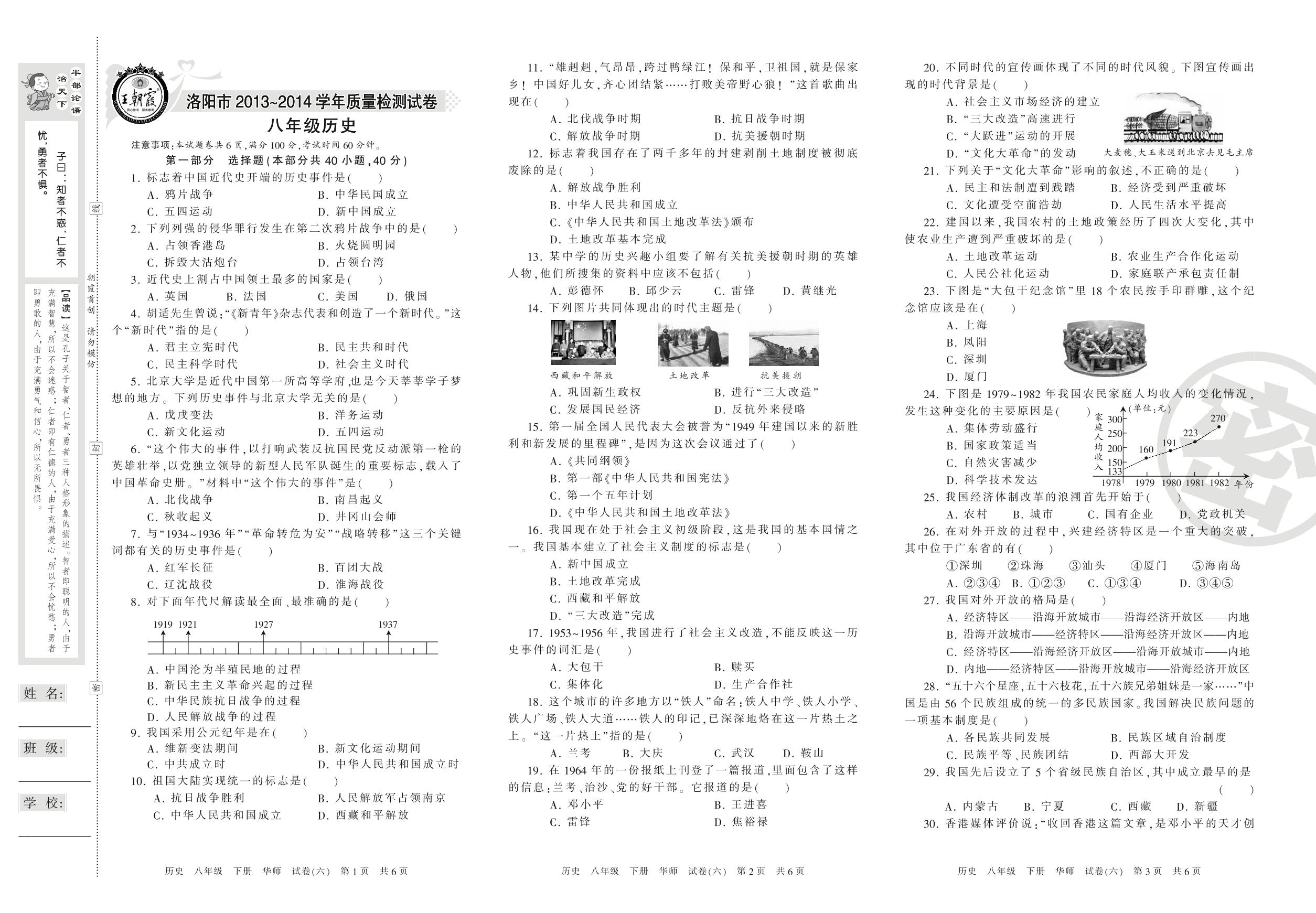 2013-2014学年第二学期洛阳市八年级历史试卷(华师版)【6】