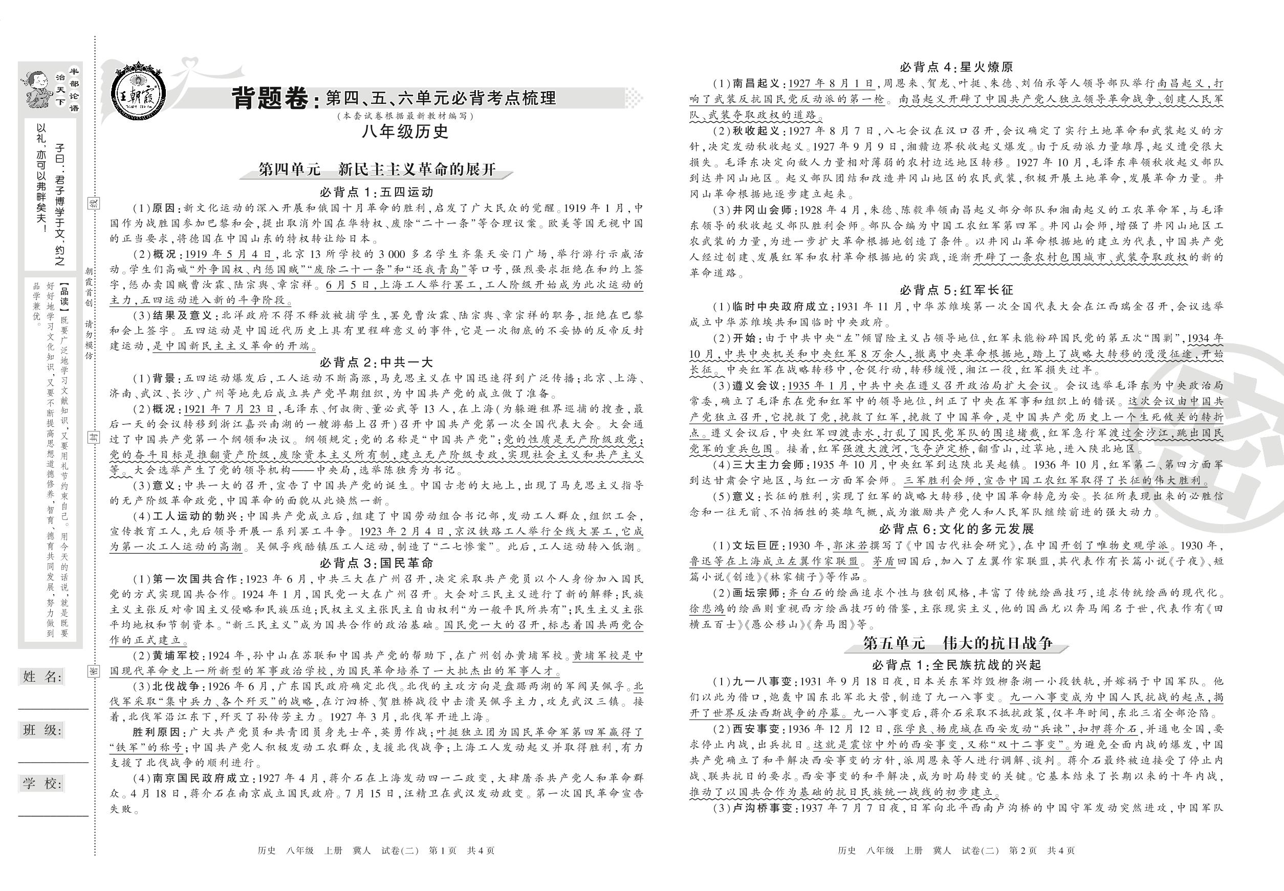 王朝霞期末背题卷八年级上册历史(冀人版)【2】