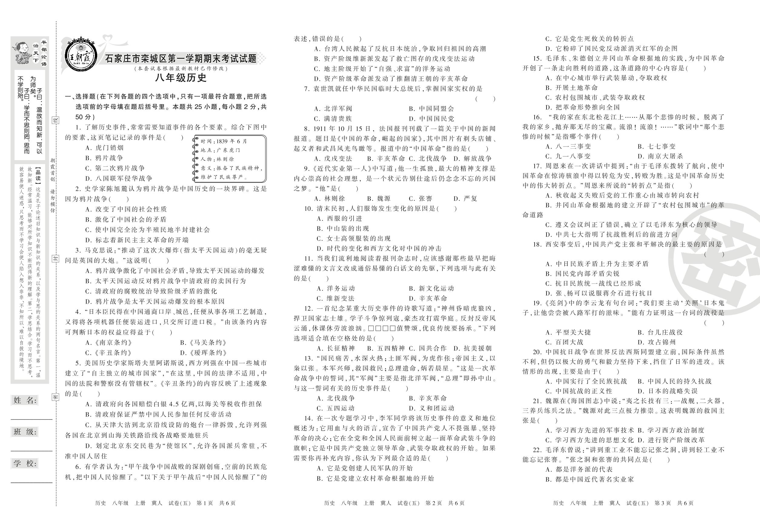 2016-2017学年第一学期石家庄市栾城区八年级历史试卷(冀人版)【5】