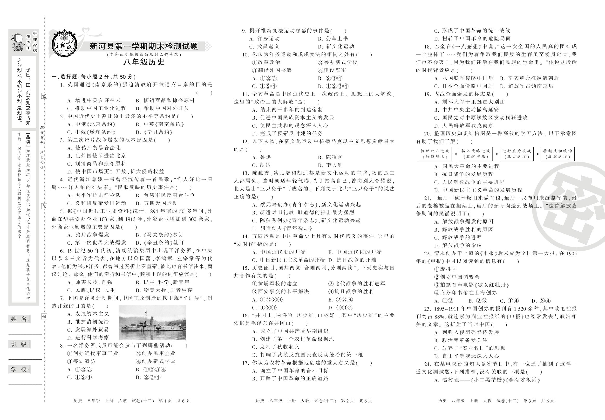 2016-2017学年第一学期邢台市河北卷新和县八年级历史试卷(人教版)【12】