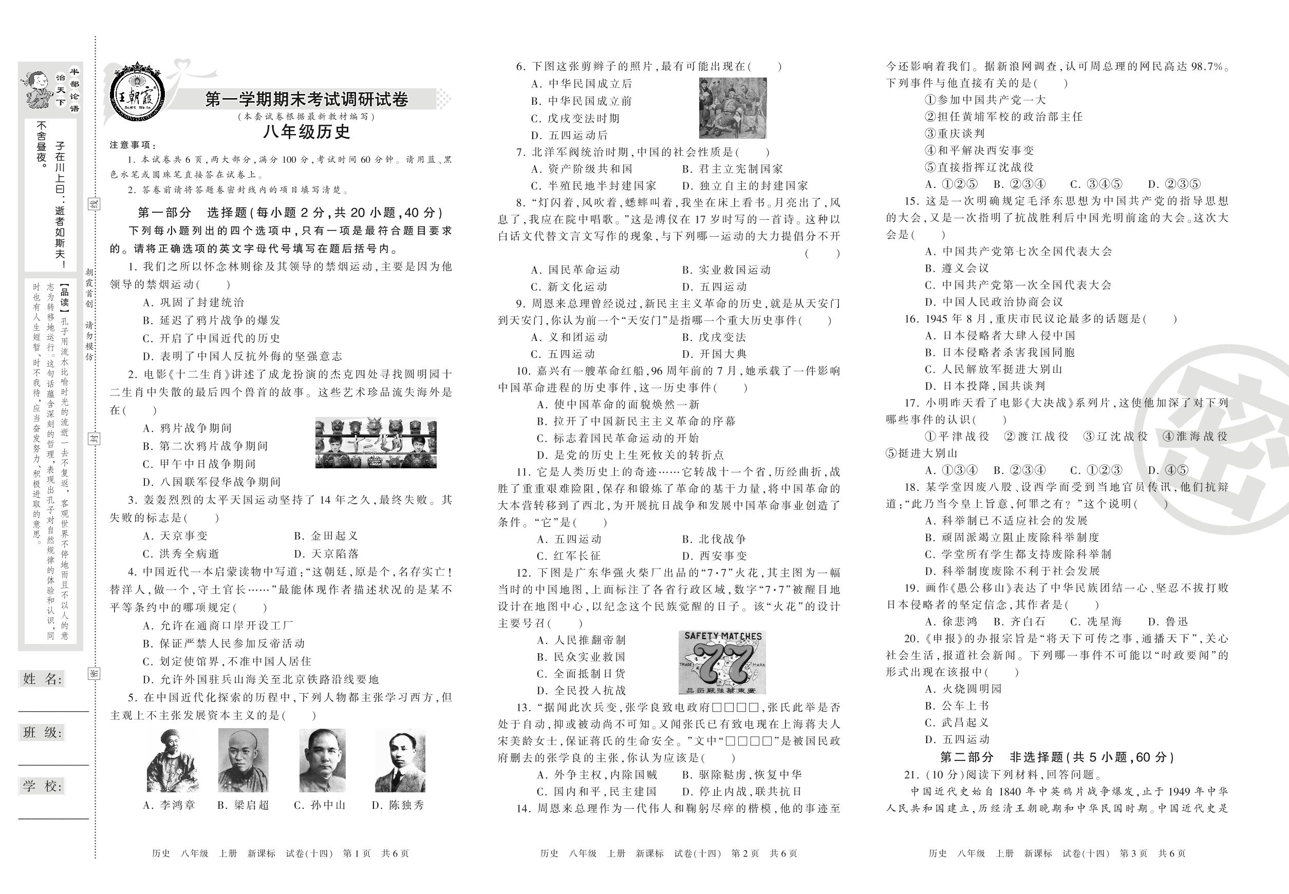 王朝霞期末调研卷八年级上册历史(新课版)【14】