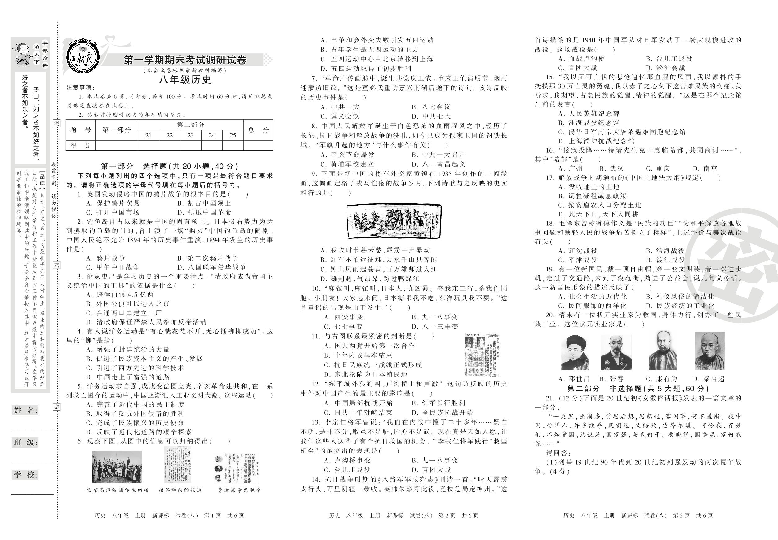 王朝霞期末调研卷八年级上册历史(新课版)【8】
