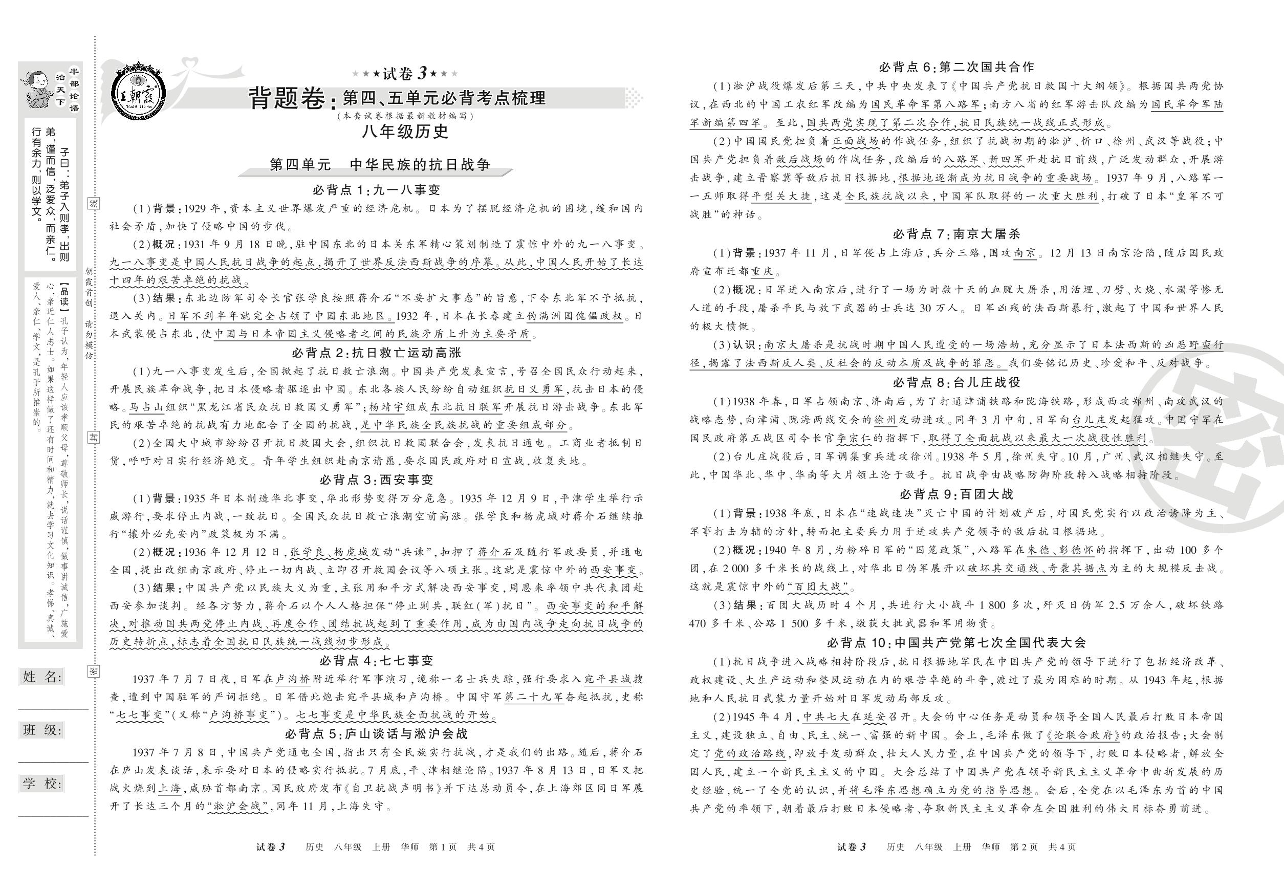 王朝霞期末背题卷八年级上册历史(华师版)【3】