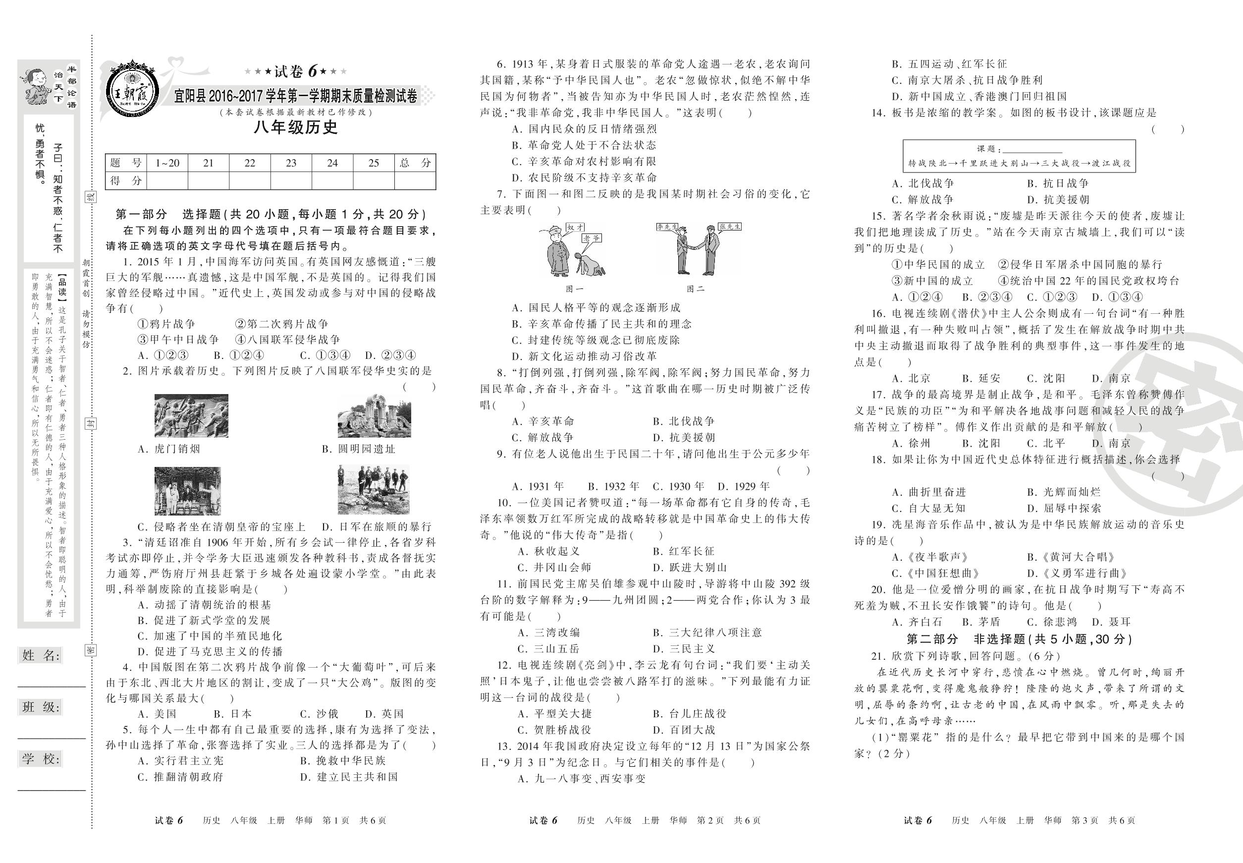 2016-2017学年第一学期洛阳市宜阳县八年级历史试卷(华师版)【6】