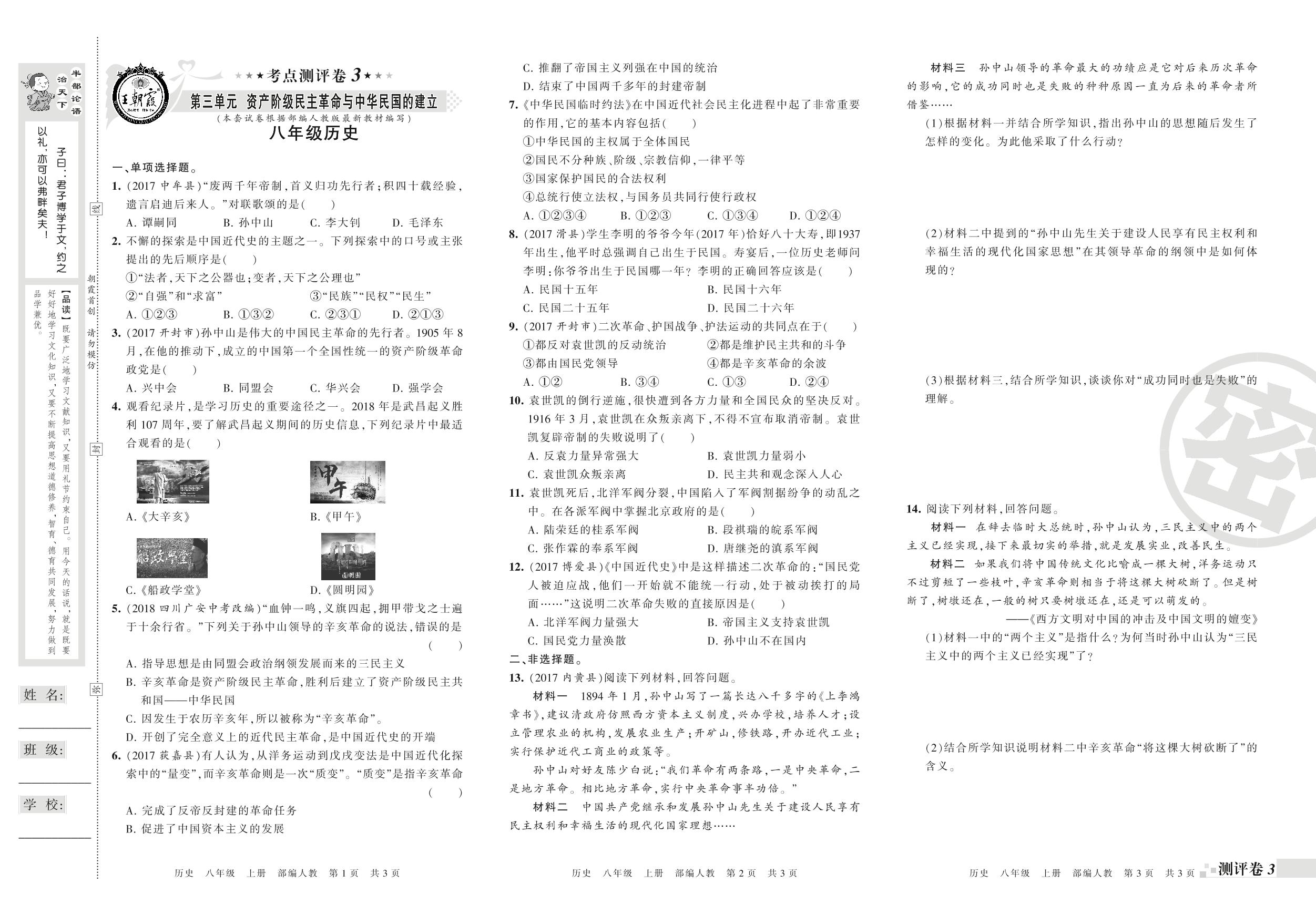 王朝霞期末测评卷——第三单元 资产阶级民主革命与中华民国的建立、第四单元 新民主主义革命的开始八年级上册历史(人教版)_R210810123248【0】