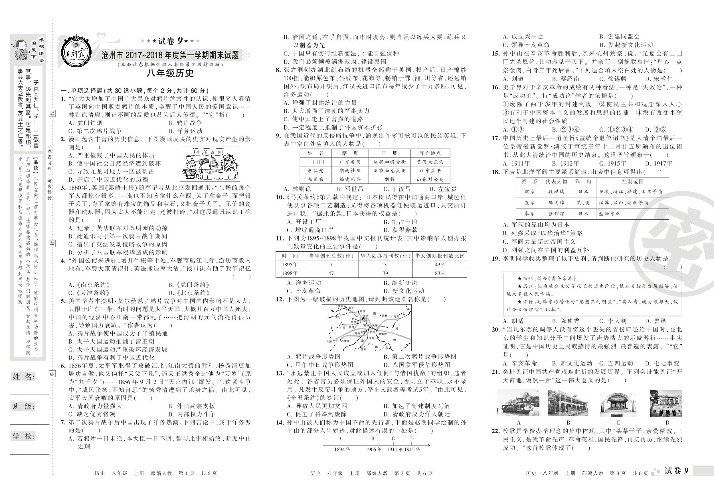 2017-2018学年第一学期沧州市八年级历史试卷(人教版)【9】